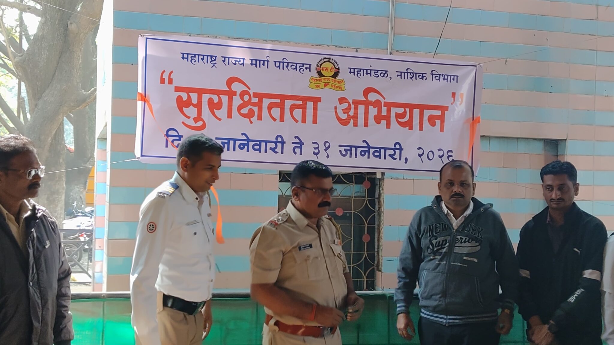 सिन्नर ( प्रतिनिधी)महाराष्ट्र राज्य मार्ग परिवहन महामंडळ (रा.प.) सिन्नर आगारात ०१ जानेवारी ते ३१ जानेवारी २०२६ या कालावधीत राबविण्यात येणाऱ्या सुरक्षितता अभियान २०२६चा शुभारंभ आज करण्यात आला. रा.प. बसच्या सुरक्षित व अपघातमुक्त सेवेसाठी हा उपक्रम महत्त्वाचा ठरणार आहे.