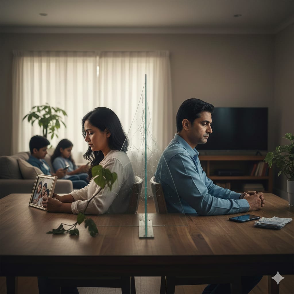 सायलेंट डिव्होर्स म्हणजे कायदेशीर घटस्फोट नव्हे, घर सोडणे नव्हे किंवा नात्याला अधिकृत पूर्णविराम देणेही नव्हे. सायलेंट डिव्होर्स म्हणजे एकाच घरात राहून, एकाच छताखाली जगूनसुद्धा मनाने हळूहळू एकमेकांपासून दूर निघून जाणे. बाहेरून पाहिले तर संसार सुरळीत चाललेला दिसतो; मात्र आतून नात्याचा गाभा रिकामा होत जातो. संवाद केवळ गरजेपुरता मर्यादित राहतो, भावना व्यक्त होणे थांबते आणि समजून घेण्याची इच्छाही हळूहळू संपुष्टात येते. हे वेगळेपण शांत असते आणि म्हणूनच ते अधिक धोकादायक ठरते. कारण येथे ओरड नाही, तक्रार नाही, वाद नाही—आणि त्यामुळे कुणालाही वेदना दिसत नाहीत. नातं तुटत असताना आवाज होत नाही; मात्र आतून व्यक्ती मोडत असते. हा तुटलेपणा शब्दांत मांडता येत नसल्याने तो अधिक खोलवर जखम करून जातो. सायलेंट डिव्होर्स हा असा भावनिक दुरावा आहे, जो हळूहळू माणसाच्या आत्मविश्वासावर, अस्तित्वावर आणि आत्मसन्मानावर घाला घालतो.