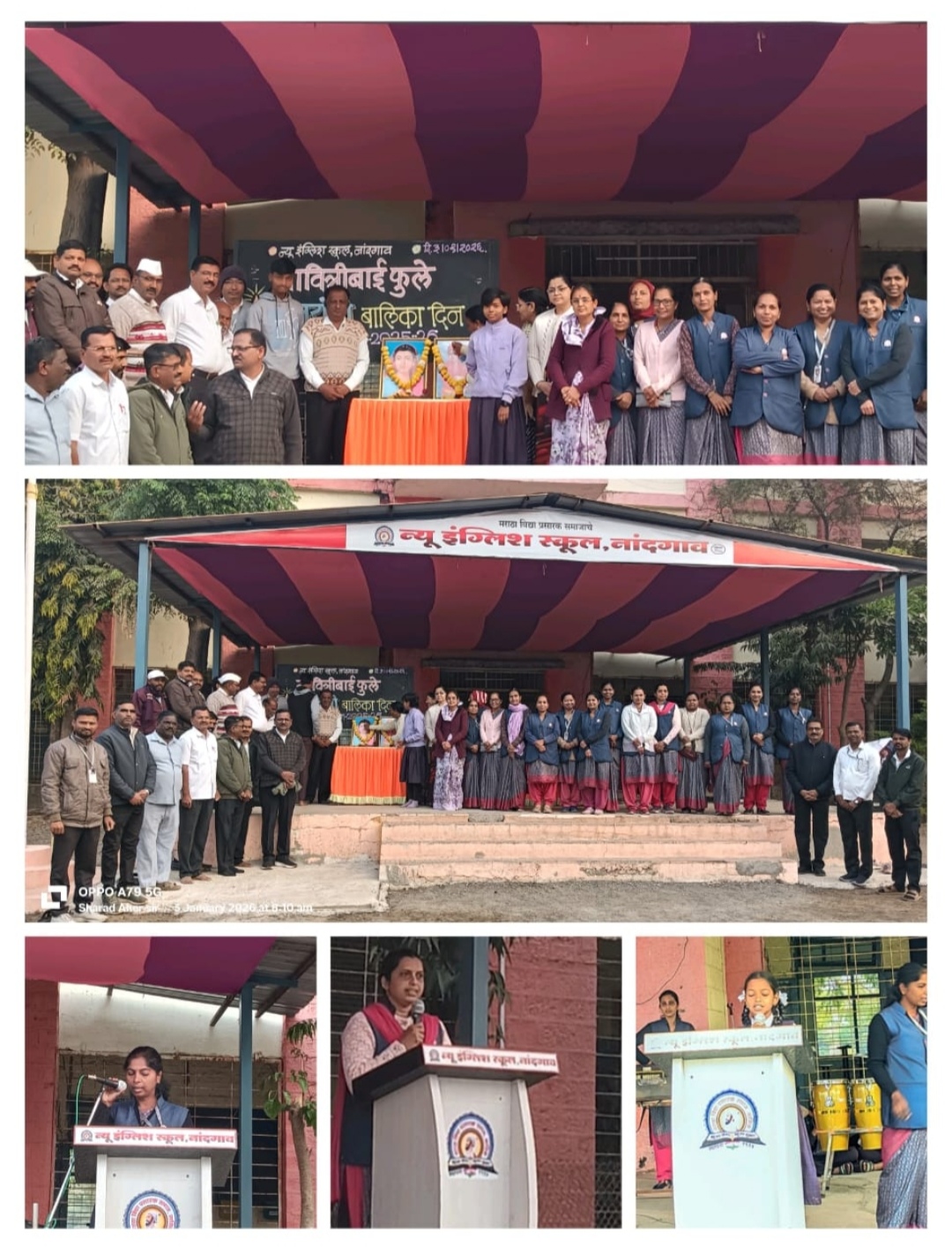 नांदगाव (प्रतिनिधी)- मविप्र समाज संस्थेचे न्यू इंग्लिश स्कूल नांदगाव विद्यालयात क्रांतीज्योती सावित्रीबाई फुले यांची जयंती निमित्ताने ' बालिका दिन ' उत्साह साजरा करण्यात आला.