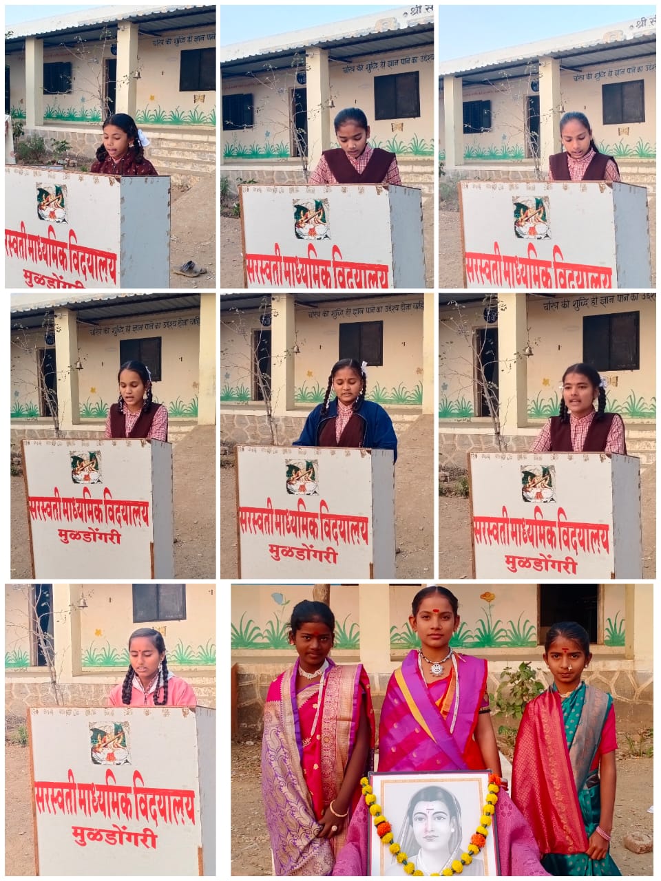 मुळडोंगरी ( प्रतिनिधी)…श्री संत सेवालाल महाराज सेवाभावी संस्था संचलित सरस्वती माध्यमिक विद्यालय मूळडोंगरी ,येथे क्रांतीज्योती सावित्रीबाई फुले जयंती व बालिका दिन, संस्थेचे अध्यक्ष माननीय श्री एस.जी. राठोड साहेब, सचिव सिद्धांत दादा राठोड यांच्या अध्यक्षतेखाली व मुख्याध्यापिका सौ.बोरसे मॅडम यांच्या मार्गदर्शनाखाली मोठ्या उत्साहात साजरी करण्यात आली.