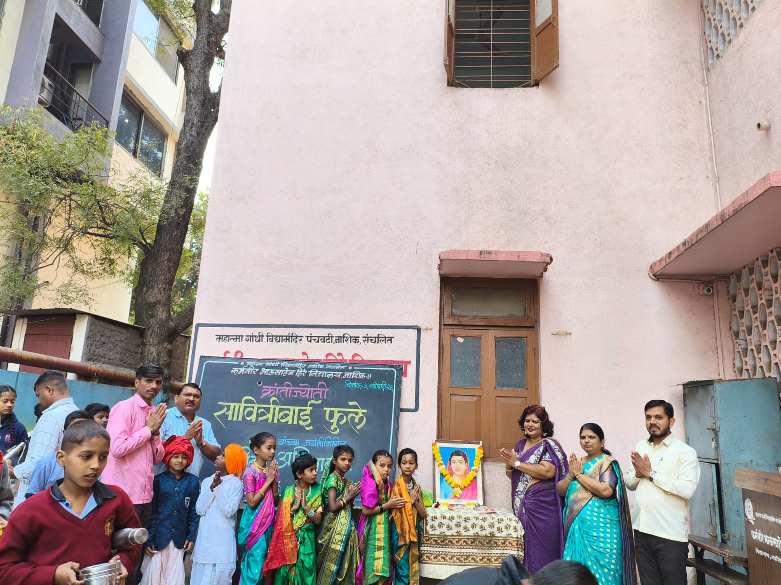विद्यालयात 3 जानेवारी क्रांतीज्योती सावित्रीबाई फुले जयंती उत्साहात साजरी करण्यात आली.कार्यक्रमाचे अध्यक्षस्थानी माध्यमिक शाळेचे मुख्याध्यापक एस, पी, पवार सर होते.तर प्रमुख पाहुणे म्हणून संस्था प्रतिनिधी सुजाता पवार प्राथमिक शाळेचे मुख्याध्यापक नंदू पवार व्यासपीठावर उपस्थित होते.अध्यक्ष व प्रमुख पाहुणे यांच्या हस्ते प्रतिमापूजन करून शाळेतील विद्यार्थ्यांनी सावित्रीबाईंच्या जीवनावर भाषणे केली.त्यात इयत्ता पहिली स्वरा दुरतकर, इयत्ता तिसरीतील राज जाधव, दीपक वायकुंडे, निशा शेवरे, सोनल दाढे लावण्या बोरसे, ज्योसना खुरकुटे इयत्ता चौथीतील मृणाल चौधरी, धनश्री खोटरे या विद्यार्थ्यांनी भाषणातून सावित्रीबाईंचे शैक्षणिक कार्य मांडले. प्रमुख वक्ता म्हणून सीमाराणी बागुल यांनी आपल्या मनोगतातून सावित्रीबाईंचा जीवनपट मांडला व कविता सादर केली.संपूर्ण कार्यक्रमाचे सूत्रसंचालन फुला शिंदे यांनी केले.तर आभार कांतीलाल मोरे यांनी मानले.