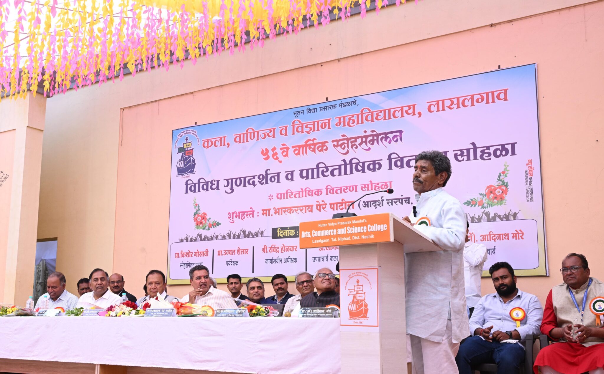 येथील लासलगाव कला, वाणिज्य व विज्ञान महाविद्यालयाच्या वार्षिक स्नेहसंमेलनाच्या पारितोषिक वितरण कार्यक्रमात ते बोलत होते. कार्यक्रमाच्या अध्यक्षस्थानी नू.वि.प्र.मंडळाचे अध्यक्ष ॲड.अंबादास आवारे होते. यावेळी व्यासपीठावर संस्थेचे जनरल सेक्रेटरी गोविंदराव होळकर, चेअरमन प्रकाश पाटील, जयवंतराव जाधव, हसमुखभाई पटेल, भाऊसाहेब रायते, ॲड.संदीप होळकर, संजय पाटील, प्राचार्य डॉ.आदिनाथ मोरे, उपप्राचार्य प्रा.भूषण हिरे, उपप्राचार्य डॉ.सोमनाथ आरोटे, कला मंडळ प्रमुख किशोर गोसावी, पर्यवेक्षक उज्वल शेलार, मच्छिंद्र साबळे, कैलास साबळे, डॉ.अरुण काळे, चंद्रकांत ठोके, सुधीर होळकर, मयूर होळकर आदी उपस्थित होते. कार्यक्रमाची सुरुवात दीपप्रज्वलन व सरस्वतीपूजनाने झाली. त्यानंतर स्वागतगीत सादर करण्यात आले.