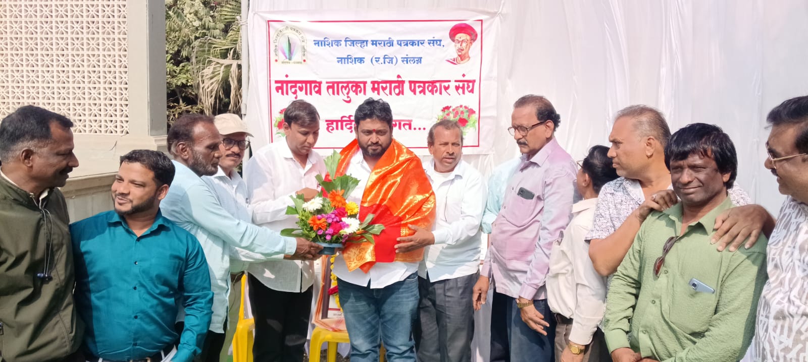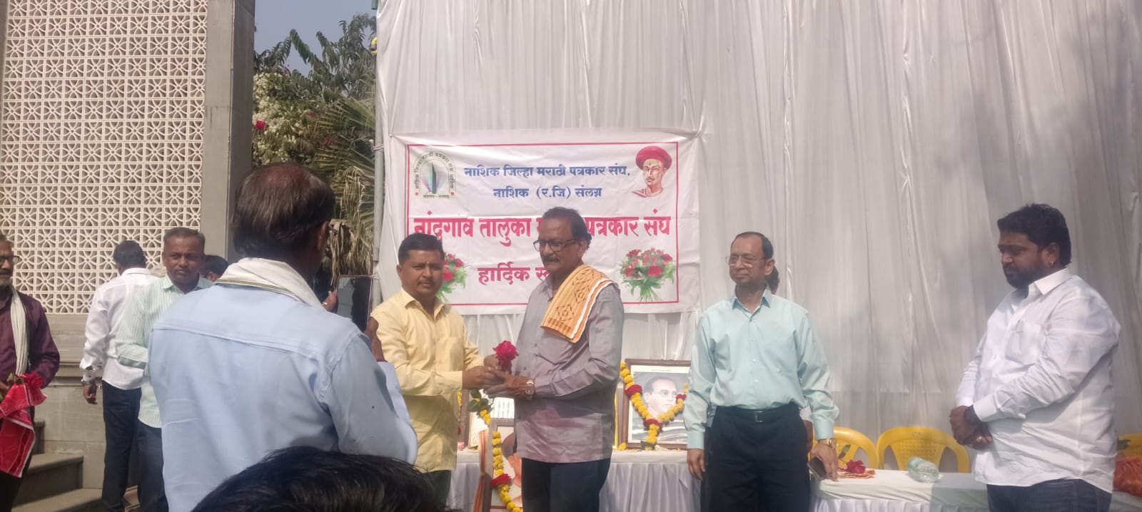 दीपक भिसे, संतोष सोर, भिका खटके, शंकर आयनोर, सुनील मेंगनर, गणेश सोर, राम शिंदे, दीपक बनगर, कृष्णा खांडेकर, चेतन शिंदे, नितीन सोनवणे, सतीश बिडवे, सुरेश निकम यांचेसह नांदगाव तालुका मराठी पत्रकार संघाचे महेश पेवाल, मोहम्मद शेख, गणेश जाधव, अनिल धामणे, विजय भावसार, सचिन पांडे, बाबासाहेब काळे, सचिन गायकवाड, निखिल मोरे उपस्थित होते. कार्यक्रमाचे प्रास्ताविक व सूत्रसंचालन अनिल आव्हाड यांनी केले. आभार चंचल गंगवाल यांनी मानले. कार्यक्रमाच्या यशस्वीतेसाठी पत्रकार संघाचे पदाधिकारी व सदस्यांनी परिश्रम घेतले.