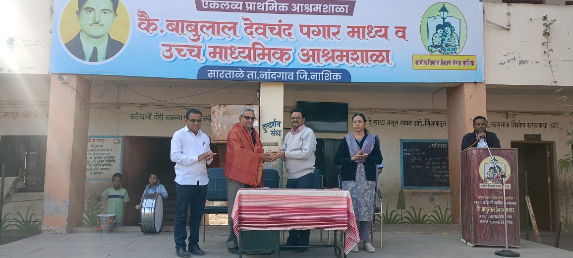 सरताळे(साकोरा)ता. नांदगाव येथे आज संस्था सरचिटणीस रमेश अप्पासाहेब पगार व संस्था कोषाध्यक्षा तथा आश्रम शाळा मुख्याध्यापिका श्रीमती नम्रता शेवाळे मॅडम व प्राचार्य समाधान चौधरी यांच्या प्रमुख उपस्थितीत श्रीपाद टाकळकर साहेब छत्रपती संभाजी नगर यांनी आपल्या उदबोधन वर्गात आश्रम शाळेच्या विद्यार्थ्यांना आजच्या विज्ञान, तंत्रज्ञाना च्या स्पर्धात्मक युगात स्वतःला सिद्ध करण्याचे आव्हान करीत मोबाईल सारख्या अत्याधुनिक इलेक्ट्रॉनिक डिव्हाईसचा सकारात्मक उपयोगाचे फायदे नमुद केलेत. गुणवत्ता पुर्ण शिक्षण आणि क्रियाशील विद्यार्थिच स्वतःच भविष्य घडवु शकतो असे सांगत अंगीभूत क्रिया कौशल्याचा सर्वोतम विकास करणाचे आव्हान केले तर संस्था सरचिटणीस अप्पासाहेब पगार यांनी विद्यार्थी हा जिज्ञासु असावा आणि विद्यार्थ्यांची जिज्ञासा आणि प्रयत्नचं त्यास अंतिम ध्येय्य पुर्तीस मदत करतात असे प्रतिपादन केले.सदर कर्यक्रम प्रास्ताविक प्राचार्य समाधान चौधरी सर यांनी मांडले तर सूत्रसंचालन अशोक पाटील सर यांनी सांभाळेल. आभार प्रदर्शनाने कार्यक्रम सांगता करण्यात आली. कार्यक्रम यशस्वीतेसाठी सर्व शिक्षक, अधीक्षक, अधिक्षिका व शिक्षकेत्तर कर्मचाऱ्यांनी विशेष प्रयत्न केलेत.