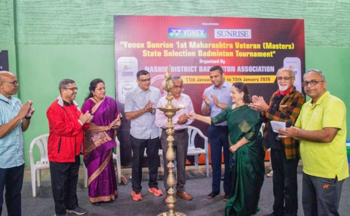 नाशिक (प्रतिनिधी), दिनांक ११ जानेवारी :- नाशिक जिल्हा बॅडमिंटन असोसिएशनच्या वतीने आणि महाराष्ट्र बॅडमिंटन असोसिएशनच्या मार्गदर्शनाखाली नाशिक येथे दिनांक ११ जानेवारी ते १५ जानेवारी, २०२६ दरम्यान आयोजित ३५ वर्षे आणि त्यावरील विविध नऊ वयोगटाच्या महाराष्ट्र राज्यस्तरीय बॅडमिंटन स्पर्धेला आज मोठ्या उत्साहात सुरवात झाली. नाशिकच्या गंगापूर रोड येथील केन्सिंगटन क्लब येथे आयोजित या स्पर्धेचे उदघाटन केन्सिंगटन क्लबचे संचालक विक्रांत मते यांच्या हस्ते आणि नाशिक बॅडमिंटन असोसिएशनचे अध्यक्ष राधेश्याम मुंदडा, सचिव पराग एकांडे, वरिष्ठ उपाध्यक्ष डॉ. शर्मिला कुलकर्णी, उपाध्यक्ष मिलिंद जोशी, उपाध्यक्ष योगेश एकबोटे, सहसचिव दिलीप लोंढे, खजिनदार समीर रहाळकर,कार्यकारी सदस्य चंदन जाधव, संदीप म्हात्रे यांच्या प्रमुख उपस्थितीत संपन्न झाले.