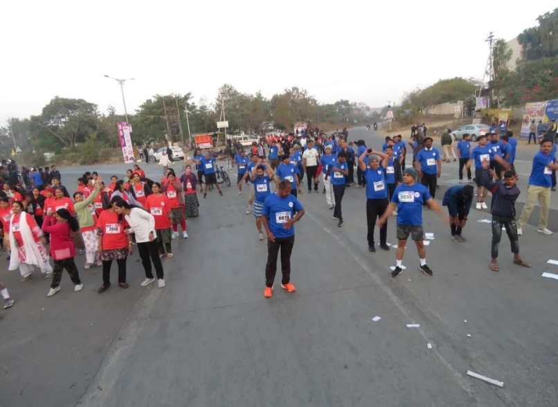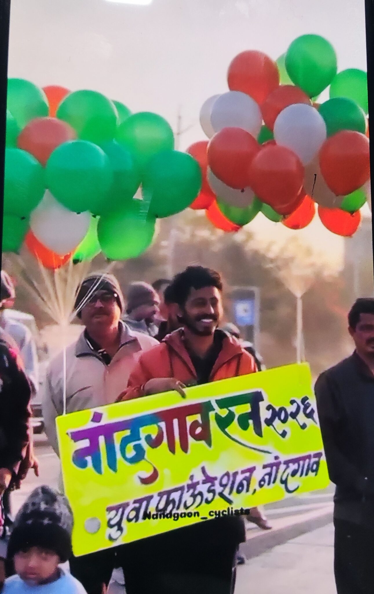 नांदगाव ( प्रतिनिधी ) राष्ट्रीय युवा दिनानिमित्त येथील युवा फाउंडेशन तर्फे एकात्मतेसाठी आणि आरोग्य सदृढ होण्यासाठी रविवारी शेकडो नागरिकांच्या संख्येने नांदगावकर धावले. या स्पर्धेसाठी चांगला प्रतिसाद मिळाला असून यात साडेतीनशे हुन अधिक स्पर्धकांनी सहभाग नोंदवला ही स्पर्धा मराठा विद्या प्रसारक समाज संचलित कला वाणिज्य आणि विज्ञान महाविद्यालयात समोरील रस्त्यावर घेण्यात आली नांदगावचे नगराध्यक्ष सागर हिरे, छत्रपती क्रिडा पुरस्कार विजेते राष्ट्रीय खेळाडू विष्णू निकम, आंतरराष्ट्रीय धावपटू मालेगावचे भिकू खैरनार, उपविभागीय पोलीस अधिकारी दर्शन दुगड, पोलीस निरीक्षक दिगंबर भदाणे यांच्या उपस्थितीत हवेत फुगे लावलेला नांदगाव चा फलक सोडून या स्पर्धेचे उद्घाटन करण्यात आले.