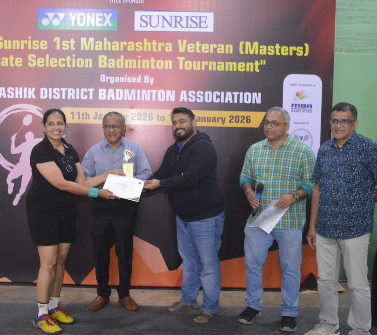 या स्पर्धेमध्ये आज पुरुषांच्या ६० वर्षे वरील गटामध्ये एकेरी प्रकारात अंतिम लढतीत मुंबई उपनगरच्या मुरली सुब्रमण्यम यांनी छत्रपती संभाजीनगरच्या गुरुमितसिंघ मथारू यांचा २१-१४ , २१-०६ असा सेटमध्ये करून या गटाचे विजेतेपद आपल्या नावे केले. महिलांच्या गटात ५५ वर्षे गटात एकेरी प्रकारात अंतिम लढत चांगलीच चुरशीची झाली. मुंबई उपनगरच्या कविता जैन आणि पुणेच्या संजीवनी महाजन यांचात खेळल्या गेलेल्या या अटीतटीच्या लढतीत संजीवनी यांनी पहिला सेट २१-१८ असा जिंकून आघाडी घेतली. तर दुसऱ्या सेटमध्ये कविता यांनी जोमाने खेळ करत हा सेट २१-०६ असा जिंकून १-१ अशी बरोबरी साधली. तिसऱ्या निर्णायक सेटमध्ये ५-५ अश्या बरोबरीनंतर कविता यांनी काही वेळा नेटजवळ ड्रॉप्स टाकत तर काही जोरदार शॉट्स लगावत या सेटवर आपले वर्चस्व राखत हा सेट २१-१२ असा जिंकून या गटाचे एकेरीचे विजेतेपद पटकावले. महिलांच्या ६० वर्षे गटामध्ये एकेरीमध्ये मुंबई उपनगरच्या सुरेखा साटम आणि ठाणेच्या प्रेरणा साधणकर यांच्यातील अंतिम सामनाही फारच रंगला. यामध्येही प्रेरणा यांनी पहिला सेट २१-१७ असा जिंकून १-० अशी आघाडी प्रस्थापित केली. दुसऱ्या सेटमध्येही १८-१८ अशी बरोबरी होती. त्यानंतर मात्र मुंबईच्या सुरेखा यांनी संयमाने खेळ करत दोन गुण मिळवत आघाडी मिळविली. हेच लय कायम राखत त्यांनी हा सेट २१-१९ असा जिंकून १-१ अशी बरोबरी साधण्यात यश मिळविले. त्यानंतर निर्णायक सेटमध्ये सुरेखा यांनी कधी नेटजवळ तर कधी खोलवर शटल ड्रॉप करतप्रेरणा यांना झुंजवले आणि हा सेट २१-१४ असा आपल्या नावे करत या गटाचे एकेरीचे विजेतेपद मिळविले. पुरुषांच्या ६५ वयोगटात मुंबई उपनगरच्या दिलिप सुखटणकर, पुणेच्या मनोहर जोशी, अनिल भंडारी आणि सुनील पुंडलिक यांनी उपांत्य फेरीत प्रवेश केला. पुरुषांच्या ७० वर्षे गटामध्ये किशोर वानखडे (वर्धा), नरेंद्र मातंगे (मुंबई उपनगर), शरद महाजन (नागपूर) आणि संजय पारधे (पुणे) यांनी उपांत्य फेरीत प्रवेश केला. पुरुषांच्या ७० वर्षे गटामध्ये ८३ वर्षे वयाचे आनंद घाटे (पुणे) आणि ठाणेचे दामोदर ठोंबरे वय वर्षे ८२ यांनी घेऊन खेळाला वय नसते तर जिद्द्दीने सराव करून आपल्याला तंदुरुस्त कसे ठेवावे याचे जणू धडे दिले. या स्पर्धेमध्ये विजेत्या ठरलेल्या खेळाडूंना प्रमुख पाहुणे यांच्या जस्ट आकर्षक ट्रॉफी आणि प्रमाणपत्र प्रदान करून गौरवण्यात आले. या स्पर्धा महाराष्ट्र बॅडमिंटन असोसिएशन यांच्या अधिकृत नियमावलीनुसार खेळविल्या जात आहेत. या स्पर्धेला “योनेक्स सनराईस” यांनी पुरस्कृत केले आहे. या स्पर्धाच्या सूत्रबद्ध आयोजनासाठी महाराष्ट्र बॅडमिंटन असोसिएशनचे अध्यक्ष अरुण लाखनी, कार्याध्यक्ष शिरीष बोराळकर, उपाध्यक्ष मंगेश काशीकर, राज्य