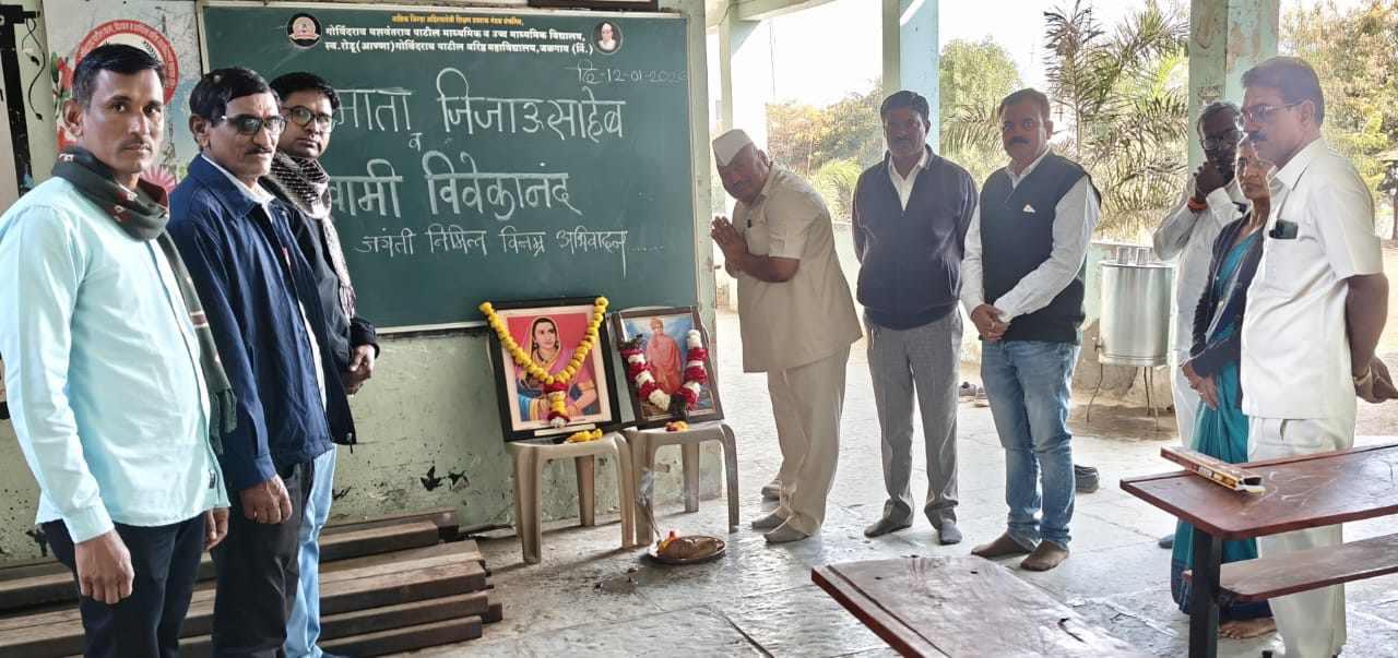 जळगाव निंबायती (वार्ताहर) येथील अहिल्यादेवी शिक्षण संस्थेच्या गोविंदराव यशवंतराव माध्यमिक उच्च माध्यमिक विद्यालयात राजमाता जिजाऊ तसेच स्वामी विवेकानंद यांची जयंती साजरी करण्यात आली. अध्यक्षस्थानी ज्येष्ठ शिक्षक डी. जे. देवरे होते. समवेत प्रमुख पाहुणे म्हणून सचिव महेंद्र पाटील, समन्वयक निंबाजी शिंदे, पर्यवेक्षक व्ही. डी काळे सर्व प्राध्यापक, शिक्षक, शिक्षिका शिक्षकेतर कर्मचारींसह बहुसंख्येने विद्यार्थी होते. प्रतिमेचे पूजन केले. प्रास्ताविक डी. के .जगताप यांनी केले, सूत्रसंचालन नरेंद्र अहिरे यांनी केले, तर आभार ए. एम. साळुंके यांनी मानलेत.