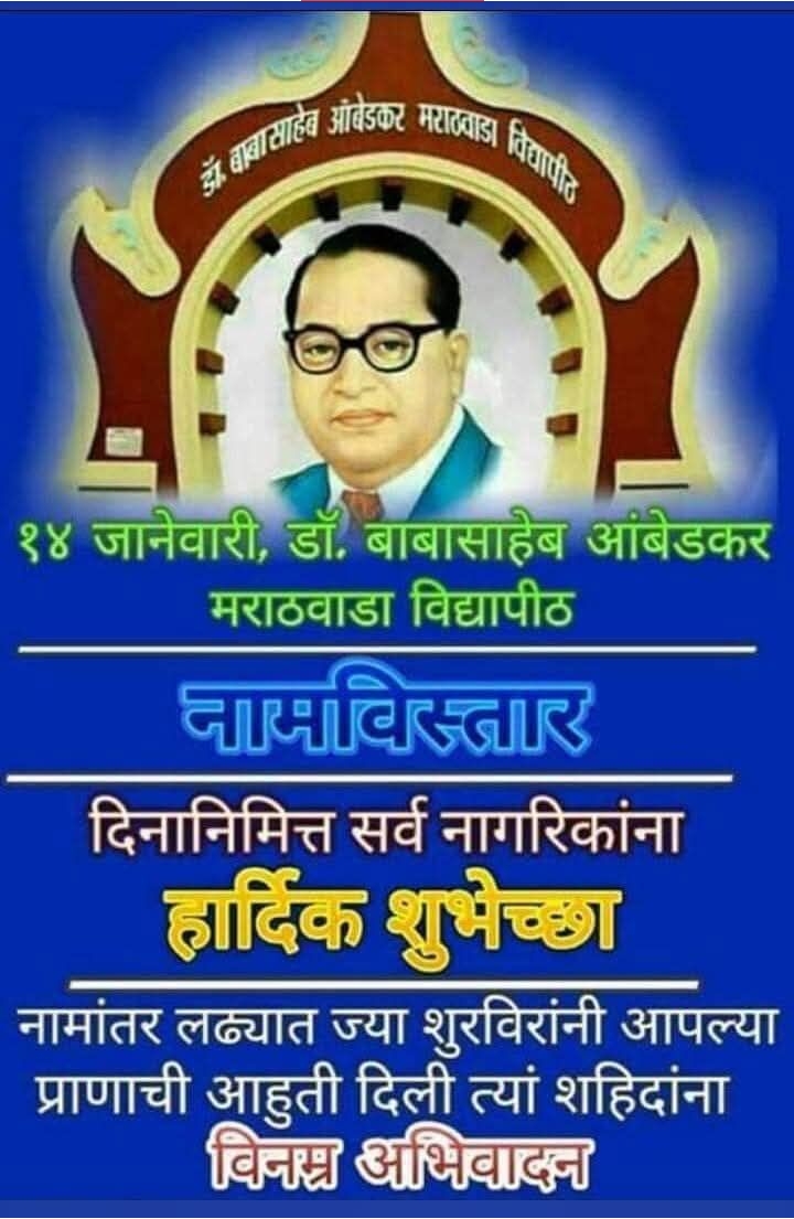 औरंगाबाद येथील मराठवाडा विद्यापीठाला डॉ. बाबासाहेब आंबेडकर यांचे नाव देण्याची प्रक्रिया, १४ जानेवारी १९९४ रोजी पूर्ण झाली नाव देण्यासाठी अनेक वर्षांपासून आंदोलन’ चालले होते यात अनेक आंदोलकांनी आपले बलिदान दिले अशा सर्वांना महामित्र परिवारच्या वतीने त्यांना आदरांजली वाहण्यात आली ज्यामुळे हे नाव मिळाले, तो दिवस आजही त्यांच्या सन्मानार्थ दिन.१४ जानेवारी रोजी ‘नामांतर दिन’ म्हणून साजरा केला जातो, ज्यांनी या लढाईत शहीद झालेल्या दिवस स्मरणार्थ दिवस म्हणून पाळला जातो अशा सर्व शहीद झालेले क्रांतिकारी सलाम