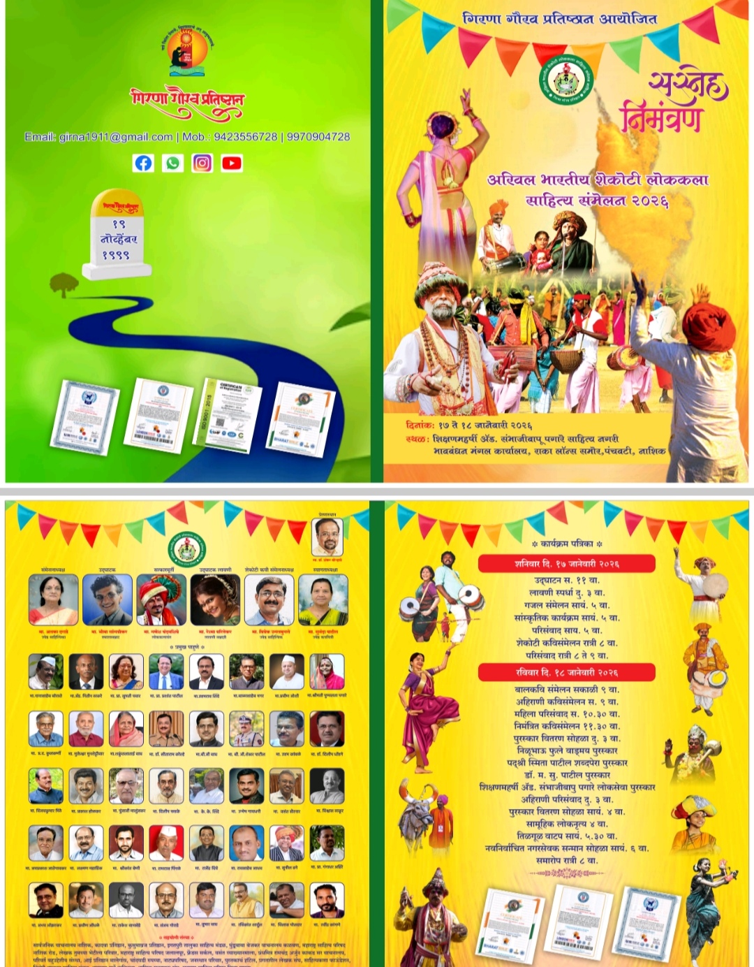 नाशिक ( प्रतिनिधी) चला चला 🔥🔥🔥शेकोटी लोककला साहित्य संमेलनाला |भावबंधन मंगल कार्यालयाच्या दरबारी लुटू या लोककलांसह साहित्याची शिदोरी ॥🔥📚🦚✍️🔥📕✒️📘✍️पांडुरंग हरी वासुदेव हरी पांडुरंग हरी वासुदेव हरी पवित्र गिरणामाईच्या तिरी सप्तशृंगी मातेच्या दरबारी गिरणा गौरव प्रतिष्ठानने घुमविली तुतारी सुरेशजी पवारांची उत्तुंग भरारी उदात्ततेचा ध्यास अंतरी व्यक्ति , कुटुंब व समाजहितैषी सत्कार्याची गंगा बहरली गिरणामाईच्या जलतीर्थाची किमया न्यारी संस्कृती संवर्धनाला गती मिळाली .सन १९९९ च्या नोव्हेंबर महिन्यात सप्तशृंग गडाच्या पायथ्याशी निसर्ग देवतेचा वरदहस्त लाभलेल्या समृध्द व संपन्न परिसरात गिरणादूत श्रीमान सुरेशजी पवार यांच्या हृदयस्थ संकल्पनेतून गिरणा गौरव प्रतिष्ठान या आगळ्या वेगळ्या संस्थेची पायाभरणी झाली . ज्येष्ठ लोकसेवक , कर्मयोगी श्रध्देय दादासाहेब बिडकर यांच्या पावन उपस्थितीत हा आविष्कार घडला . आपल्या मातृभूमीसाठी , मातृभाषेसाठी , साहित्य , लोककला , संस्कृतिसंवर्धनासाठी , देशबांधवांच्या सर्वांगीण उन्नयनासाठी कृतज्ञतायुक्त अंतःकरणाने झिजावं , समर्पित व्हावं हा ध्यास घेऊन कृतिशील झालेल्या, झपाटलेल्या गिरणादूताने हळू हळू आपल्या जनहितैषी उपक्रमांची व्याप्ती , खोली , उंची व गुणवत्ता चौफेर वृद्धिंगत केली . माणसं जोडली, कुटुंबे जोडली , संस्था संघटना जोडल्या . या सगळयांना जोडायचं , संघटीत करायचं , त्यांचं कौशल्य , क्षमता , गुणवत्ता सत्कार्यात गुंफायची अन् लोकयज्ञ सुनियंत्रित ठेऊन उत्तम कार्य करायचं हे दुर्मिळ कसब सुरेशजींजवळ असल्यामुळे गिरणा गौरव प्रतिष्ठानने भरभक्कमपणे रौप्यमहोत्सवापर्यंत देदिप्यमान , लक्ष्यवेधी व अविस्मरणीय कामगिरी केली आहे . माणसातलं तत्त्व , सत्व , गुरुत्व , गुणत्व , ध्यानत्व, आत्मत्व , विशेषत्व , कलाकौशल्य या अंगाने शोध घेऊन त्यांना प्रेरणा , प्रोत्साहन , बळ देऊन प्रकाशमान करणारी कार्यशैली अंगिकारल्यामुळे गिरणागौरव प्रतिष्ठानला अर्थात गिरणादूत सुरेशजी व त्यांच्या सहयोगी समुहाला जनताजनार्दनाच्या अंतःकरणात आदराचं स्थान मिळालं . संस्थात्मक लोकहितैषी कार्याचा दीपस्तंभ म्हणजे गिरणागौरव प्रतिष्ठान असं समीकरण बनलं .🔥🔥🔥🔥🔥🔥🔥🔥📚📕📗✒️🦚🦚🦚१७ व १८ जानेवारी २०२६ ला मकर संक्रमणाच्या मंगल पर्वकाळात श्रीक्षेत्र नाशिकच्या मखमलाबादरोडवरील भावबंधन मंगल कार्यालयात साहित्य व लोककला पंढरीच्या वारकऱ्यांचा अफलातून महाकुंभमेळा सुरेशजींनी आयोजित केला आहे . गिरणामाईचे जलतीर्थ व गोदामाईच्या रामतीर्थाचा संगम म्हणजे शेकोटी साहित्य व लोककला संमेलन . गेला महिनाभर महाराष्ट्र , महाराष्ट्राच्या बाहेरुन साहित्यिक , कलावं
