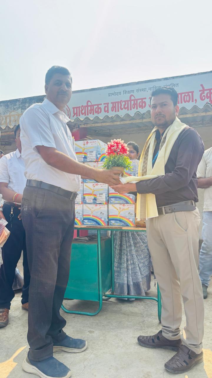सर्वप्रथम त्यांचे शाळेच्या वतीने शाळेचे अधीक्षक श्री नितीन एकनाथ नितानकर यांनी सर्व बँकेतील अधिकारी वर्गांचे शब्द सुमनांनी स्वागत केले त्यानंतर बँकेचे शाखा अधिकारी श्री शशिकांत संभाजी बरबडे यांचे स्वागत शाळेचे मुख्याध्यापक श्री जे एम थोरात यांनी शाल व श्रीफळ देऊन केले तसेच बँकेचे प्रशासन अधिकारी श्री हेमंत सुरेश रावळे यांचे स्वागत मुख्याध्यापक श्री डी आर सूर्यवंशी यांनी केले शाळेच्या वतीने सर्व शाखा सर्व शाखेतील कर्मचारी रुंद यांचे आभार करण्यात आले तर आश्रम शाळेच्या वतीने श्री नितानकर आभार मानण्यात आले.कार्यक्रम प्रसंगी शाळेतील सर्व कर्मचारी वृंद उपस्थित होते