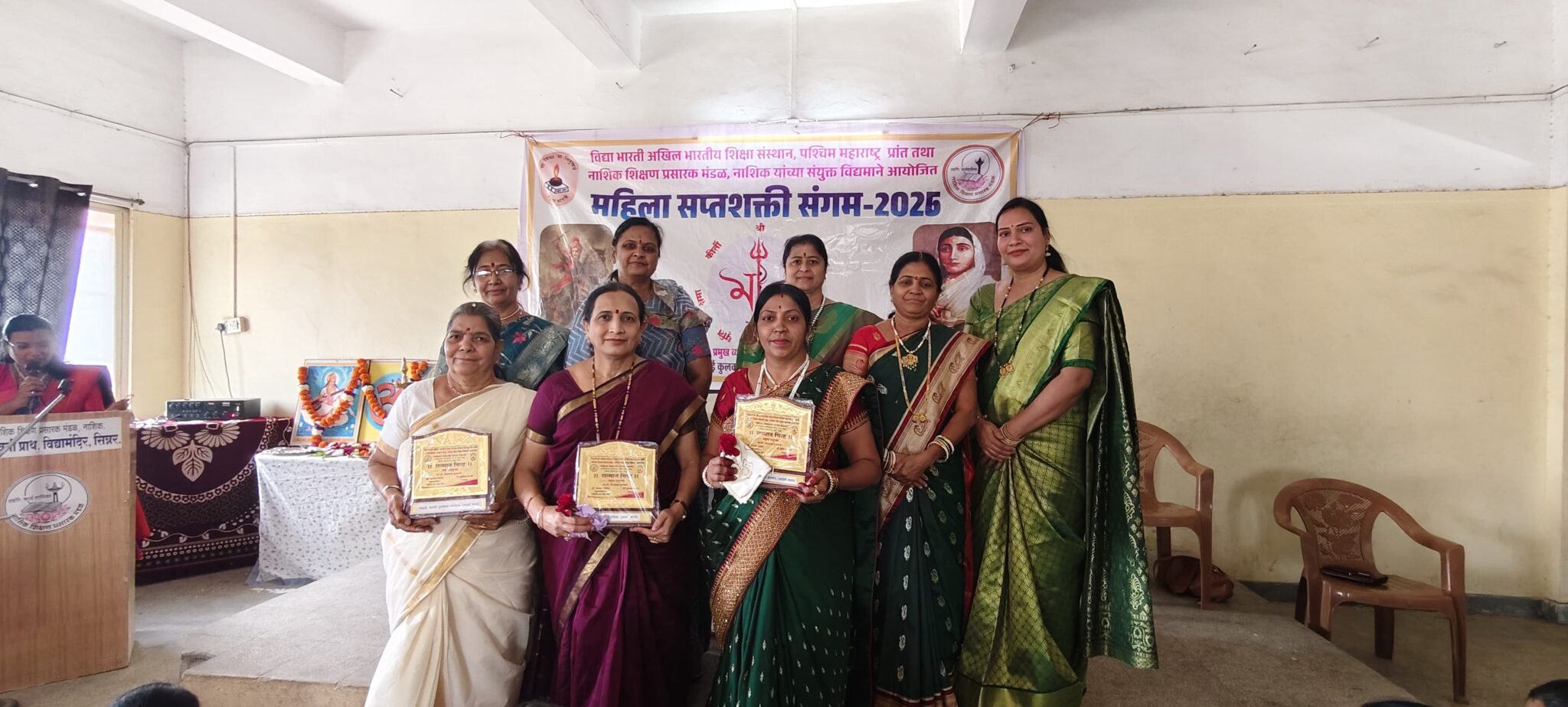 संजीवनी प्राथमिक विद्यामंदिर शाळेत मकर संक्रांती निमित्त महिला सप्तशक्ती मेळाव्याचे आयोजन करण्यात आले. कार्यक्रमाच्या प्रमुख व्याख्यात्या सौ.गिताताई कुलकर्णी कार्यक्रमाच्या अध्यक्षा सौ. सुचिता करवा शाळेच्या मुख्याध्यापिका सौ मंगला गोविंद अधिक्षिका सौ. अरुणा चोथवे व्यवस्थापन समिती अध्यक्ष सौ.अश्विनी सगर आदी उपस्थित होते. कार्यक्रमाची सुरुवात दिप प्रज्वलनाने झाली. नारी शक्ती, विविधतेत एकता, शक्तीत सौम्यता, विचारात सकारात्मकता, संस्कृतीची जोपासना, सप्तशती व आत्मविश्वासाचा जागर हा कार्यक्रमाचा उद्देश आपल्या प्रास्ताविकेतून मुख्याध्यापिका यांनी सांगितला. अरुणा चोथवे यांनी कार्यक्रमास लाभलेल्या पाहुण्यांचा परिचय करून दिला.महिलांना देवाने किर्ती, श्री, वाक, स्मृती, मेघा, धृती व क्षमा या सात शक्तींची देवी देणगी दिली आहे. त्यांचा वापर त्यांनी आपल्या संसारासाठी व मुलांच्या संगोपन करण्यासाठी करावा. कारण मुलं आपलं अनुकरण करतात, कुटुंबाची कीर्ती, वैभव, लक्ष्मी, संपत्ती, जपली पाहिजे. आपल्या वाणीच्या माध्यमातून कुटुंबाला एकत्र ठेवले पाहिजे. बौद्धिक क्षमता व स्मरणशक्ती वाढवली पाहिजे.