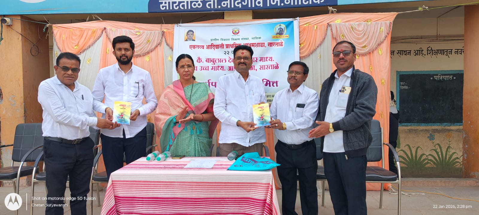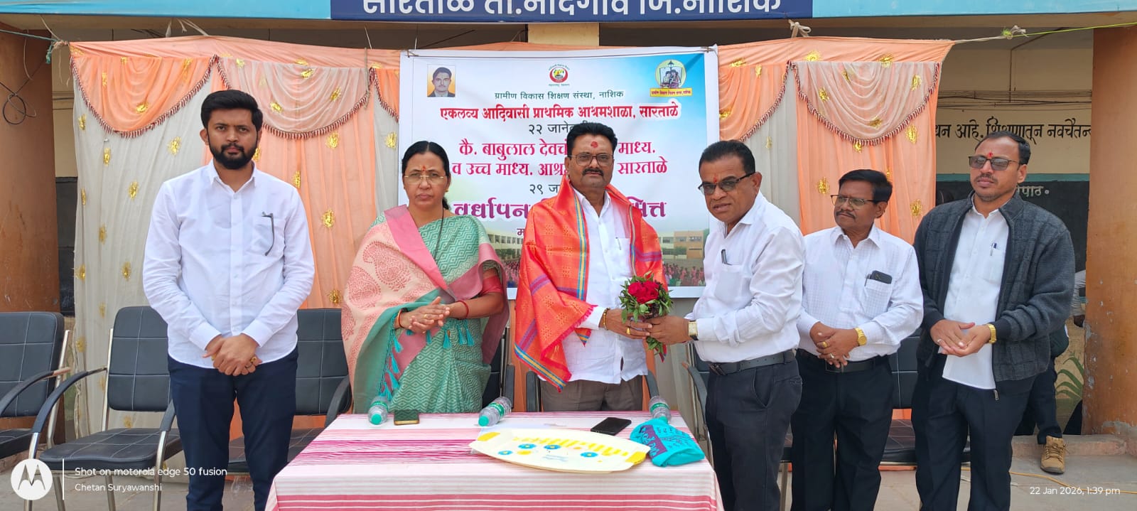 नांदगाव – ,(.प्रतिनिधी ) ग्रामीण विकास शिक्षण संस्था नाशिक संचलित आश्रम शाळा सरताळे येथे आज शालेय वर्धापण दिन प्रित्यर्थ कला, शास्र आणि वाणिज्य महाविद्यालयाचे सेवानिवृत्त प्राध्यापक,साहित्यिक प्रा. सुरेश नारायणे यांच्या हस्ते उदघाटन झाले सदर प्रसंगी प्राध्यापक नारायणे यांनी विद्यार्थ्यांना शालेय शिक्षणाचे महत्व सांगत शालेय स्पर्धा ह्या आपल्यातील उत्तमत्वाच्या विकासार्थ प्रोत्साहित करतात असे नमुद केले