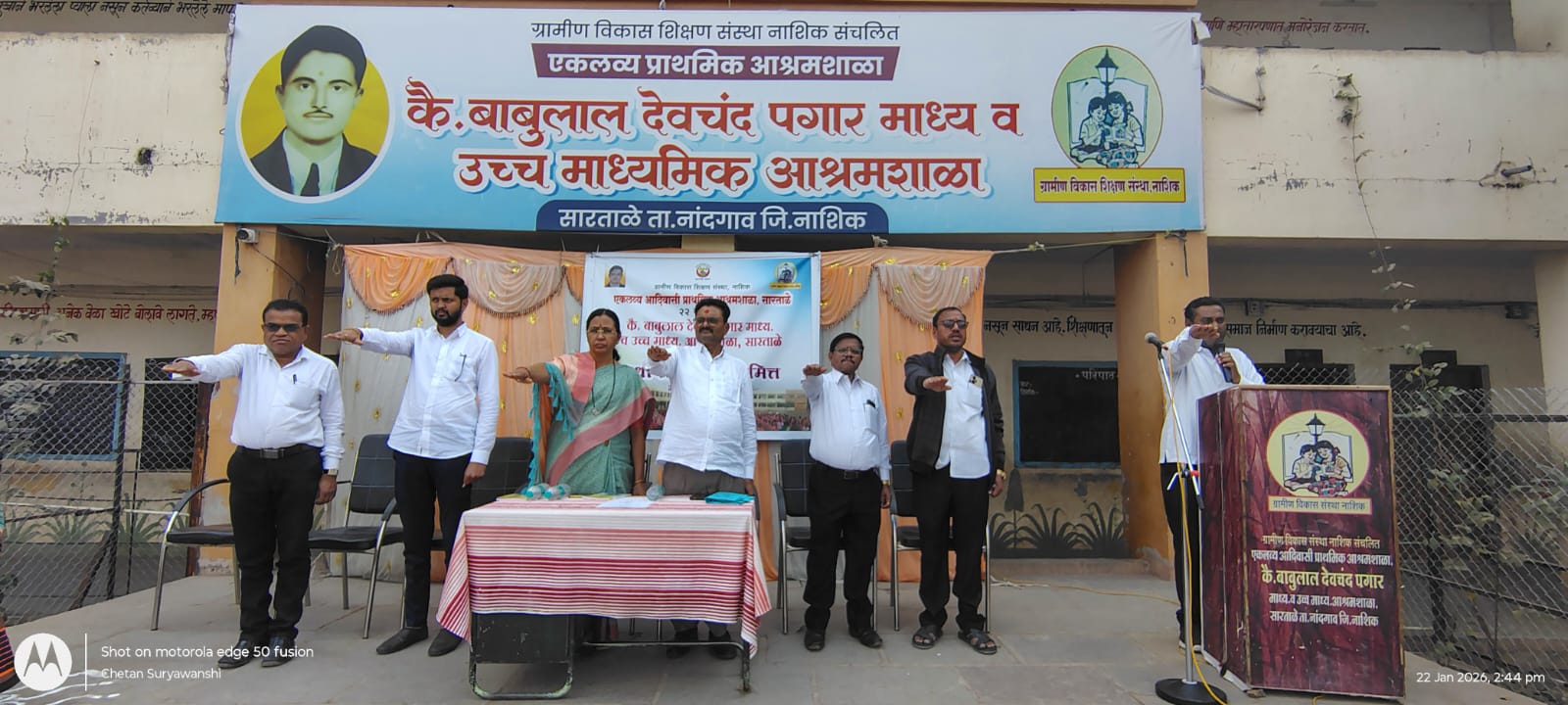 नांदगाव (प्रतिनिधी)नांदगाव-ग्रामीण विकास शिक्षण संस्था नाशिक संचलित आश्रम शाळा सारताळे येथे आज कला, शास्र, वाणिज्य महाविद्यालयाचे सेवानिवृत्त प्राध्यापक सुरेश नारायणे, संस्था सरचिटणीस रमेश अप्पासाहेब पगार,संस्था अध्यक्ष दर्शन दादा पगार, कोषाध्यक्षा तथा प्राथमिक मुख्याध्यापिका नम्रता पगार मॅडम, प्राचार्य समाधान चौधरी, शिक्षण शास्र महाविद्यालय प्राचार्य घुगे सर यांच्या प्रमुख उपस्थितीत इयत्ता 10 वी 12वी च्या विद्यार्थ्यांना प्रमाणपत्र परीक्षेची नियमावली व उत्तर पत्रिका लिखाण संदर्भात मार्गदर्शन करीत कॉपीमुक्त परीक्षेची शपथ देण्यात आली.