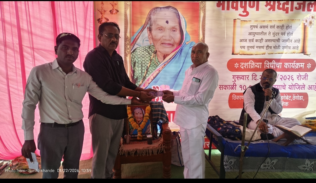 लोहोणेर-:(. प्रतिनिधी ) येथील मराठा विद्या प्रसारक समाज संस्थेच्या जनता विद्यालयाला लांडगेबेट (ता. सटाणा) येथील रहिवासी रामदास शंकर बागुल यांनी आपली आई कै.सखुबाई शंकर बागुल यांच्या स्मरणार्थ शैक्षणिक कामासाठी ११,१०० रुपयांची देणगी विद्यालयाला दिली. ही देणगी विद्यार्थ्यांच्या शैक्षणिक प्रगतीसाठी उपयुक्त ठरणार असून गरजू विद्यार्थ्यांना मदत, शाळेतील शैक्षणिक साहित्य तसेच अध्ययन-अध्यापनासाठी आवश्यक साधने उपलब्ध करण्यासाठी वापरण्यात येणार असल्याचे शाळा मुख्याध्यापिका कल्पना शिंदे यांनी सांगितले.सदर देणगी विद्यालयाच्या मुख्याध्यापिका कल्पना शिंदे यांच्या वतीने शिक्षक राकेश थोरात व सुनिल एखंडे यांनी श्री. रामदास शंकर बागुल व श्री. समाधान मोठाभाऊ बागुल यांच्या हस्ते स्वीकारली.आईच्या स्मरणार्थ शिक्षणासाठी केलेली मदत ही समाजोपयोगी आणि प्रेरणादायी आहे. विद्यार्थ्यांच्या उज्वल भविष्यासाठी अशा देणग्या आधार ठरतात असे यावेळी उपस्थितांनी नमूद केले.यापुढील काळातही शाळेच्या उपक्रमांना सहकार्य करणार असल्याची भावना दात्यांनी व्यक्त केली. तसेच समाजातील इतर दानशूर व्यक्तींनीही शाळेच्या शैक्षणिक कार्यात योगदान द्यावे, असे आवाहन यावेळी करण्यात आले.