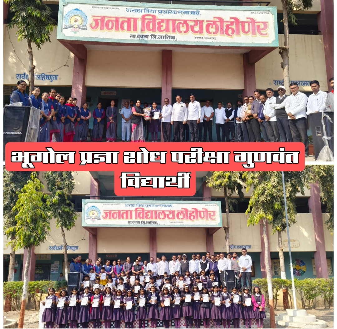 लोहोणेर-( प्रतिनिधी):येथील मराठा विद्या प्रसारक समाज संस्थेच्या जनता विद्यालयाची विद्यार्थिनी अक्षरा रमेश देसले हिने भूगोल प्रज्ञाशोध केंद्र नवी मुंबई यांच्या वतीने राष्ट्रीय भूगोल दिनाच्या निमित्ताने घेण्यात आलेल्या राज्यस्तरीय भूगोल प्रज्ञाशोध परीक्षेत १००पैकी ८४ गुण मिळवून यश संपादित केले.विद्यार्थ्यांमध्ये भौगोलिक संकल्पना त्याचे रहस्य आणि उकल याविषयी जिज्ञासा निर्माण व्हावी त्याचबरोबर या भौगोलिक संकल्पना सहज व सोप्या पद्धतीने समजाव्यात या उद्देशाने या परीक्षेचे आयोजन या संस्थेच्या वतीने करण्यात येते. मुख्याध्यापिका कल्पना शिंदे,उपमुख्याध्यापक निंबा ठाकरे, पर्यवेक्षक विलास निकम यांच्या मार्गदर्शनाखाली परीक्षेचे आयोजन करण्यात आले.सदर परीक्षेत एकूण ५२विद्यार्थी प्रविष्ठ होते.त्यात एकूण ४० विद्यार्थ्यांनी यश संपादित केले. अक्षरा रमेश देसले हिला सिल्वर मेडल व सन्मानपत्र देऊन गौरविण्यात आले. परीक्षेचे आयोजन भूगोल विषय समितीच्या वतीने करण्यात आले तर परीक्षेचे समन्वयक म्हणून अविनाश मोरे यांनी काम पाहिले. यशस्वी विद्यार्थ्यांना शिक्षक छोटू वाघ,राकेश थोरात,मुरली भामरे,मयूर सोनवणे,दशरथ आहेर,मनिषा गिरासे आदींचे मार्गदर्शन लाभले.या यशाबद्दल मविप्र देवळा तालुका संचालक विजय पगार,माध्यमिक शालेय समिती अध्यक्ष भैय्यासाहेब देशमुख,नितीन आहेर शाळा व्यवस्थापन समिती अध्यक्ष रमेश आहिरे,पालक संघ उपाध्यक्ष दिपक देशमुख तसेच शालेय समिती,व्यवस्थापन समिती,पालक शिक्षक संघ,माता-पालक संघ सदस्य आदींसह आणि शिक्षकवृंदांनी अभिनंदन केले. कार्यक्रमाचे सूत्रसंचालन सांस्कृतिक समिती प्रमुख सुनिल एखंडे यांनी केले.