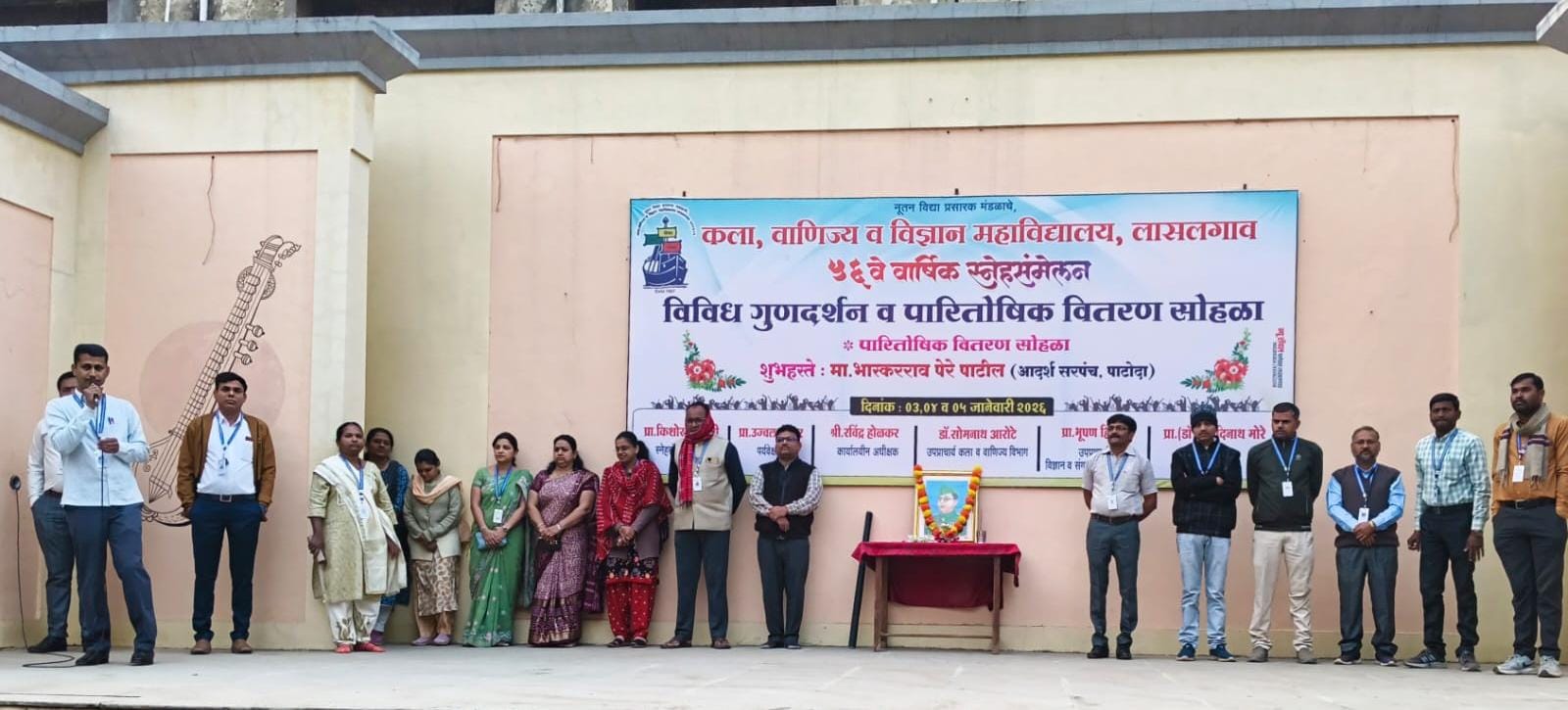 लासलगाव, ता. २३ (प्रतिनिधी ) : येथील नूतन विद्या प्रसारक मंडळ संचलित कला, वाणिज्य व विज्ञान महाविद्यालयात आझाद हिंद सेनेचे संस्थापक नेताजी सुभाषचंद्र बोस यांची जयंती साजरी करण्यात आली. याप्रसंगी नेताजी सुभाषचंद्र बोस यांच्या प्रतिमेचे पूजन उपस्थित पर्यवेक्षक प्रा.उज्वल शेलार, प्रा.किशोर गोसावी, रा.से.यो. कार्यक्रमाधिकारी प्रा.देवेंद्र भांडे, प्रा.सुनिल गायकर आणि उच्च माध्यमिक विभागाचे सर्व प्राध्यापकांच्या हस्ते करण्यात आले.