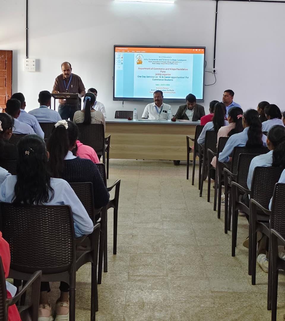 लासलगाव, ता. २३ (प्रतिनिधी ) : येथील नूतन विद्या प्रसारक मंडळ संचलित कला, वाणिज्य व विज्ञान महाविद्यालयात वाणिज्य विभागाच्या वतीने ‘ए.आय. आणि करिअर संधी’ या विषयावर एकदिवसीय करिअर मार्गदर्शन शिबिराचे आयोजन करण्यात आले. या शिबिरात निलया फाउंडेशन, पुणे येथील करिअर काउन्सेलर चेतन गोडबोले यांनी विद्यार्थ्यांना मार्गदर्शन केले. त्यांनी आपल्या मार्गदर्शनात कृत्रिम बुद्धिमत्ता (Artificial Intelligence) क्षेत्रातील वाढत्या संधी, विविध करिअर पर्याय तसेच भविष्यात रोजगाराच्या संधी कशा उपलब्ध होतील याबाबत सविस्तर माहिती दिली. विद्यार्थ्यांनी बदलत्या तंत्रज्ञानाशी जुळवून घेत कौशल्यविकासावर भर द्यावा, असे त्यांनी नमूद केले. कार्यक्रमाच्या अध्यक्षस्थानी इंग्रजी विभागाचे डॉ. प्रणव खोचे होते. डॉ.खोचे यांनी अध्यक्षीय भाषणात करिअर निवड करताना योग्य मार्गदर्शन व सातत्यपूर्ण प्रयत्नांचे महत्त्व अधोरेखित केले. कार्यक्रमाचे सूत्रसंचालन प्रा.विरेंद्र आहेर यांनी केले तर प्रास्ताविक डॉ. मनोहर मोरे यांनी केले.