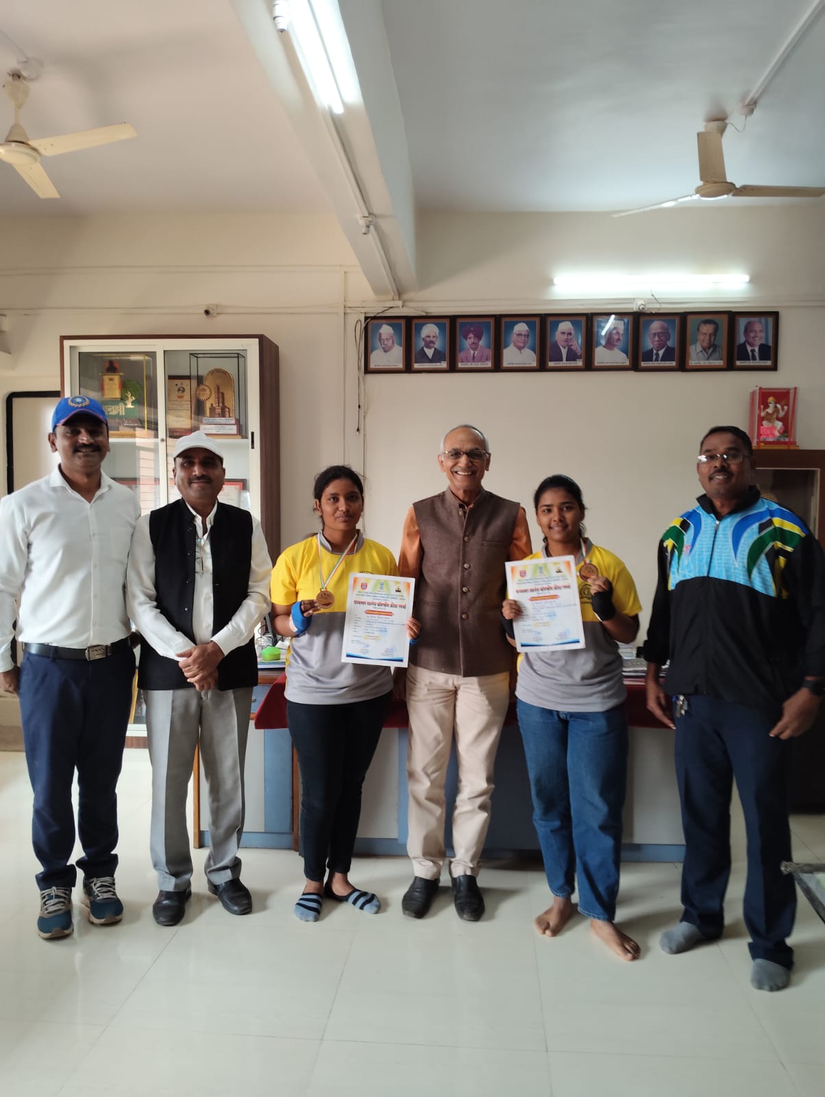 नांदगाव (प्रतिनिधी ) कला, वाणिज्य व विज्ञान महाविद्यालय, नांदगावच्या विद्यार्थ्यांनी बॉक्सिंग खेळ प्रकारात यश संपादन केले. क्रीडा व युवक सेवा संचनालय महाराष्ट्र राज्य व जिल्हा क्रीडा अधिकारी, अकोला आणि तालुका क्रीडा संकुल,मूर्तिजापुर जिल्हा अकोला यांच्या संयुक्त विद्यमाने 19 वर्षाखालील मुले व मुलींसाठी शालेय राज्यस्तरीय बॉक्सिंग क्रीडा स्पर्धा दिनांक २०/०१/२०२६ ते २२/०१/२०२६ दरम्यान संपन्न झाल्या. या शालेय क्रीडा स्पर्धेत कला, वाणिज्य व विज्ञान महाविद्यालय, नांदगावच्या तीन मुलींचा सहभाग होता. या स्पर्धेत महाराष्ट्रातील सर्व विभागाचा समावेश होता. आपल्या कनिष्ठ महाविद्यालयाच्या विद्यार्थिनींनी नाशिक विभागाचे प्रतिनिधित्व केले.त्यात कु. कोमल विलास भगत, कु. वैष्णवी सचिन कुलथे या दोन्हीही विद्यार्थिनी उत्कृष्ट खेळाचे प्रदर्शन करत महाराष्ट्रातून तृतीय क्रमांक पटकावला तसेच साक्षी प्रमोद सोनवणे या खेळाडूला चौथ्या क्रमांकावर समाधान मानावे लागले. यशस्वी विद्यार्थिनींचे मविप्र संचालक,नांदगाव इंजि. अमितभाऊ बोरसे पाटील, महाविद्यालयाचे प्राचार्य डॉ. एन. यु. पाटील, कनिष्ठ महाविद्यालयाचे उपप्राचार्य श्री राठोड डी.एम. वरिष्ठ महाविद्यालयाचे उपप्राचार्य डॉ. संजय मराठे, विज्ञान विभाग प्रमुख श्री पी.एम. आहेर, आर्ट्स कॉमर्स प्रमुख जी. व्ही. बोरसे, एन. एस. एस. कार्यक्रम अधिकारी बी. के. पवार, ज्येष्ठ शिक्षक बी. वाय. आहेर,ए.जी. पानसरे,एस.जी. पवार, जाधव ए.के. सर्व शिक्षक व शिक्षकेतर सेवक यांनी खेळाडू विद्यार्थिनीचे अभिनंदन केले व पुढील वाटचालीस शुभेच्छा दिल्या. यशस्वी विद्यार्थिनींना खेळाचे कौशल्य तांत्रिक मार्गदर्शन उपप्राचार्य व क्रीडाशिक्षक प्रा. डी. एम. राठोड व महाविद्यालयाचे क्रीडा संचालक लोकेश गळदगे यांनी केले. क्रीडा विभाग सहाय्यक दिलीप अहिरराव यांनी खेळाडूंच्या स्पर्धा पूर्वतयारीसाठी परिश्रम घेतले.