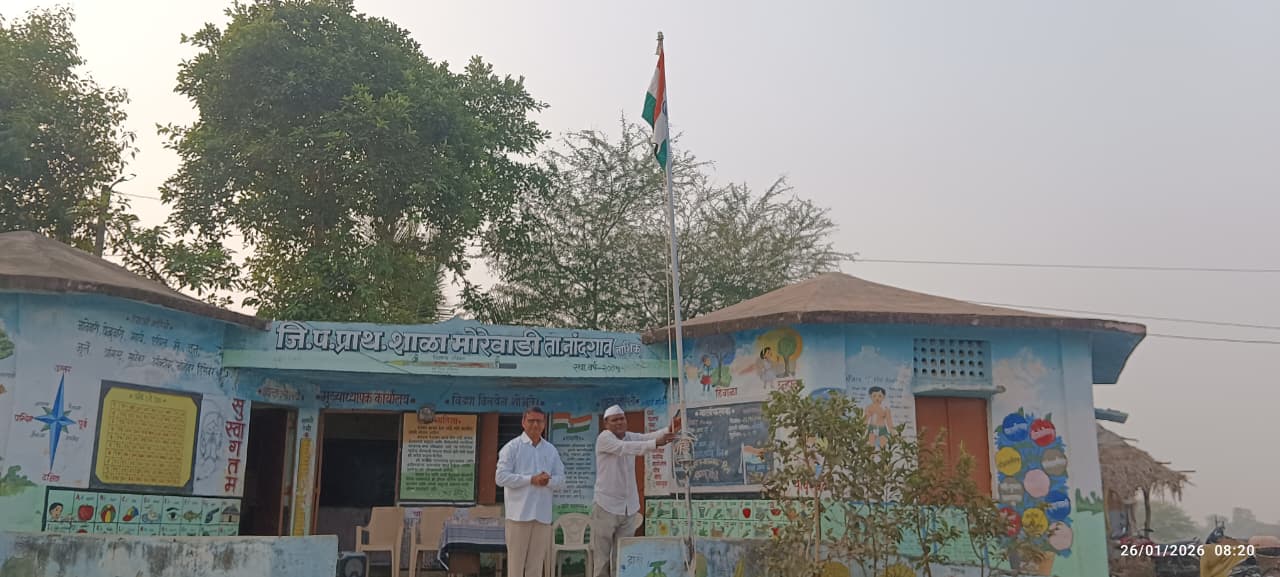 मोरेवाडी ( प्रतिनिधी ) जिल्हा परिषद प्राथमिक शाळा मोरेवाडी येथे भारताचा “७७”वा प्रजासत्ताक दिन मोठ्या उत्साहात साजरा करण्यात आला.प्रमुख मान्यवरांच्या हस्ते ध्वजपूजन करण्यात येऊन शाळेचे ध्वजारोहण श्रीयुत बाळू लहू मोरे यांच्या हस्ते करण्यात आले.याप्रसंगी राष्ट्रीय झेंड्यास सलामी देऊन राष्ट्रगीत,ध्वजगीत व महाराष्ट्र गीत सादर करण्यात आले.