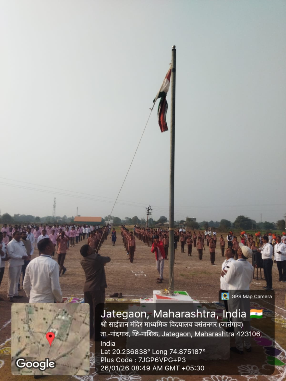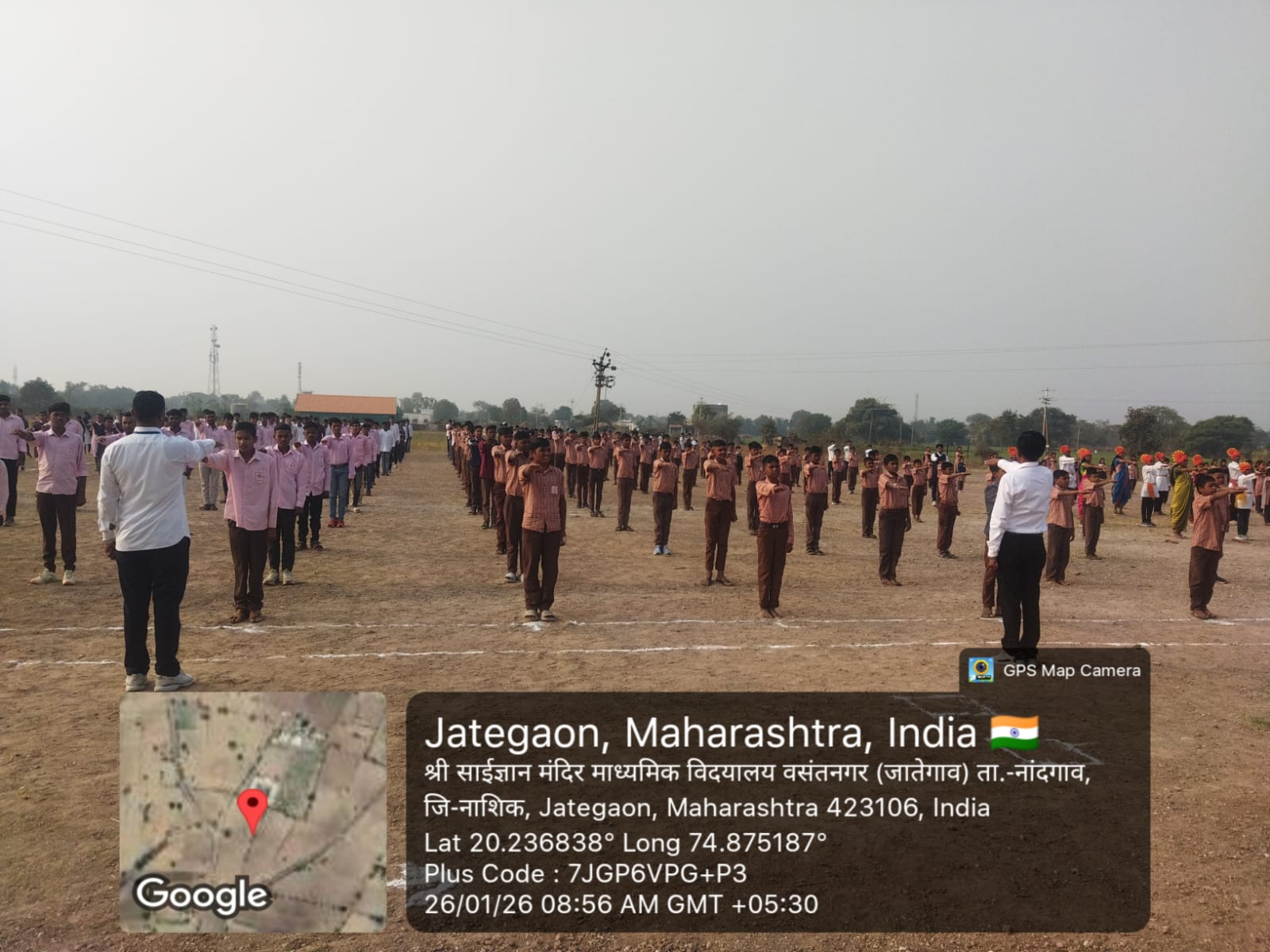 वसंतनगर (ता. नांदगाव) : श्री साई ज्ञान मंदिर माध्यमिक विद्यालय, वसंतनगर ता. नांदगाव जि. नाशिक येथे भारताचा ७६ वा प्रजासत्ताक दिन मोठ्या उत्साहात साजरा करण्यात आला.