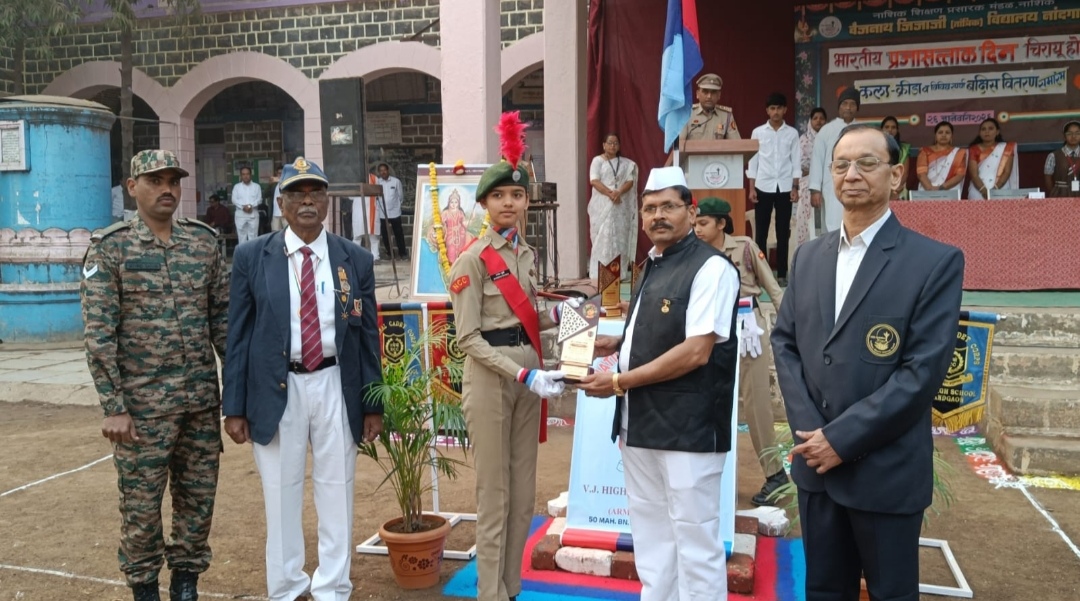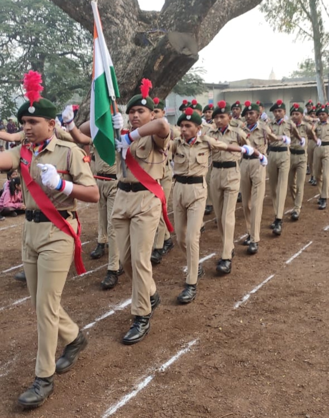 भारत माता की जय..! वंदे मातरम…! आदी विद्यार्थ्यांच्या उत्स्फूर्त घोषणांमुळे वातावरण देशभक्तीमय होण्यासह परीसर जोशपूर्ण निनादाने गजबजून गेला होता.., NCC मध्ये वर्षभर उत्कृष्ट कामगिरी करणाऱ्या बेस्ट कॅडेटनां सन्मानचिन्ह देऊन मान्यवरांच्या हस्ते गौरविण्यात आले.