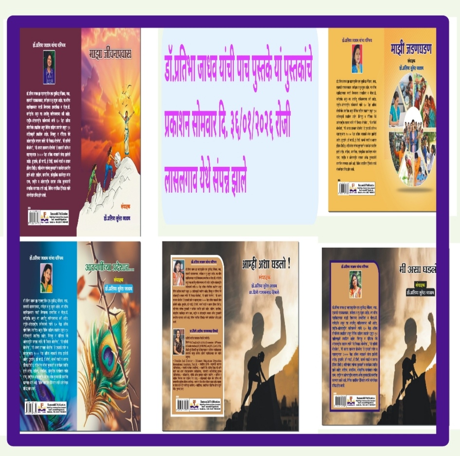 नाशिक.( प्रतिनिधी ) – सुप्रसिद्ध साहित्यिक,वक्ता, एकपात्री नाट्यकलाकार डॉ.प्रतिभा जाधव यांच्या एकूण पाच संपादित पुस्तकाचा प्रकाशन सोहळा नुकताच संपन्न झाला. नूतन विद्या प्रसारक मंडळाचे कला, वाणिज्य व विज्ञान महाविद्यालय, लासलगाव ह्या संस्थेचे सेक्रेटरी मा.गोविंदराव होळकर, कॅप्टन नीलकंठ खोंड, प्राचार्य डॉ.आदिनाथ मोरे, संस्थेचे सर्व मान्यवर संचालक मंडळ यांचे शुभहस्ते सोमवार दि. २६/१/२०२६ रोजी पुस्तक प्रकाशन झाले. सदर संपादित पुस्तकांचे शीर्षक माझा जीवनप्रवास, माझी जडणघडण, माझा शिक्षणप्रवास, मी अशी घडले, आठवणींच्या प्रदेशात व मी असा घडलो अशी आहेत. ह्या पाच संपादित पुस्तकांमध्ये महाराष्ट्रभरातील विविध क्षेत्रांत उल्लेखनीय कार्य करणाऱ्या व्यक्तींनी लेखन केलेले असून सर्व लेख प्रेरक असे आहेत. यापूर्वी डॉ.प्रतिभा जाधव यांची १५ पुस्तके प्रकाशित आहेत.