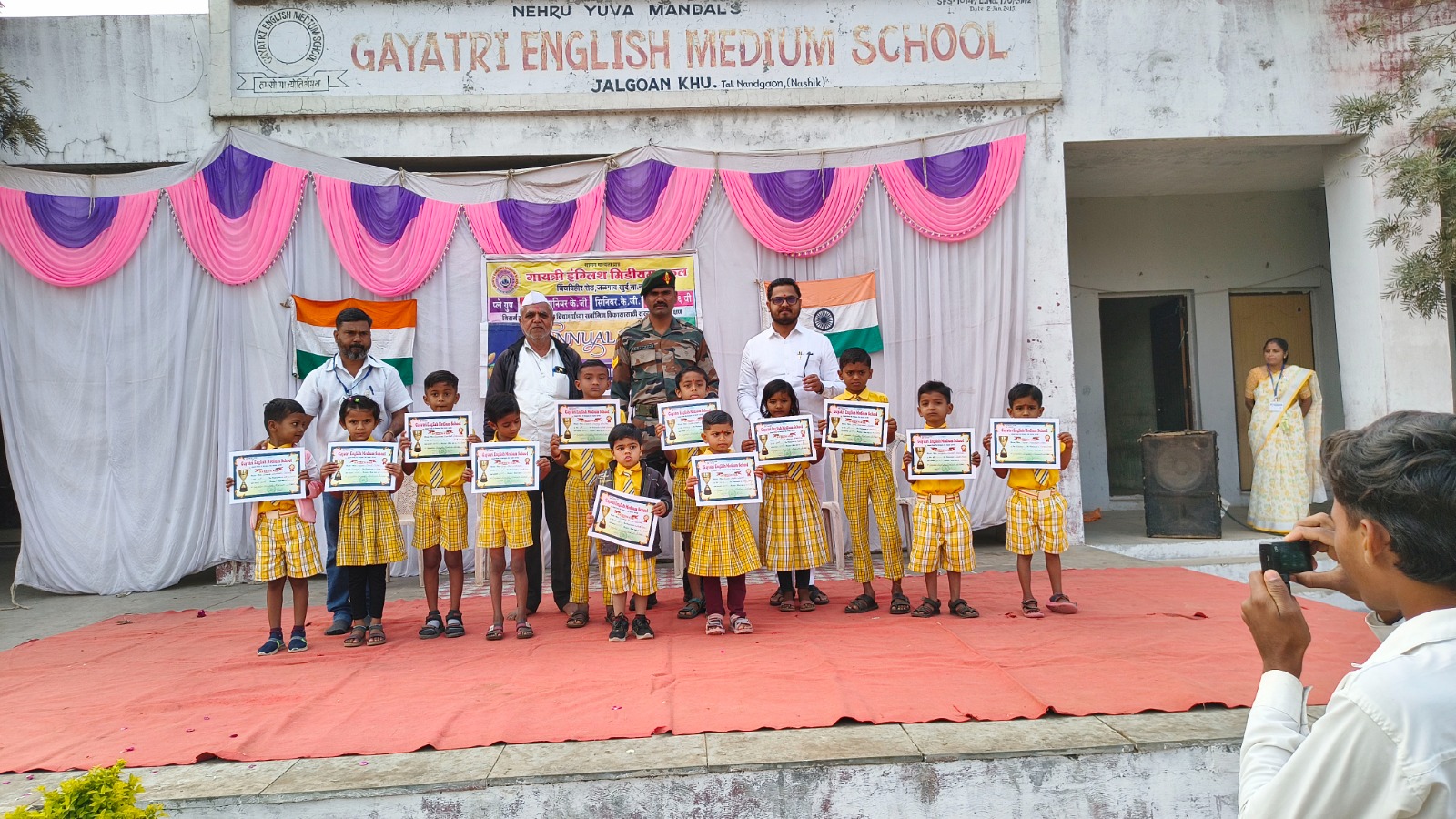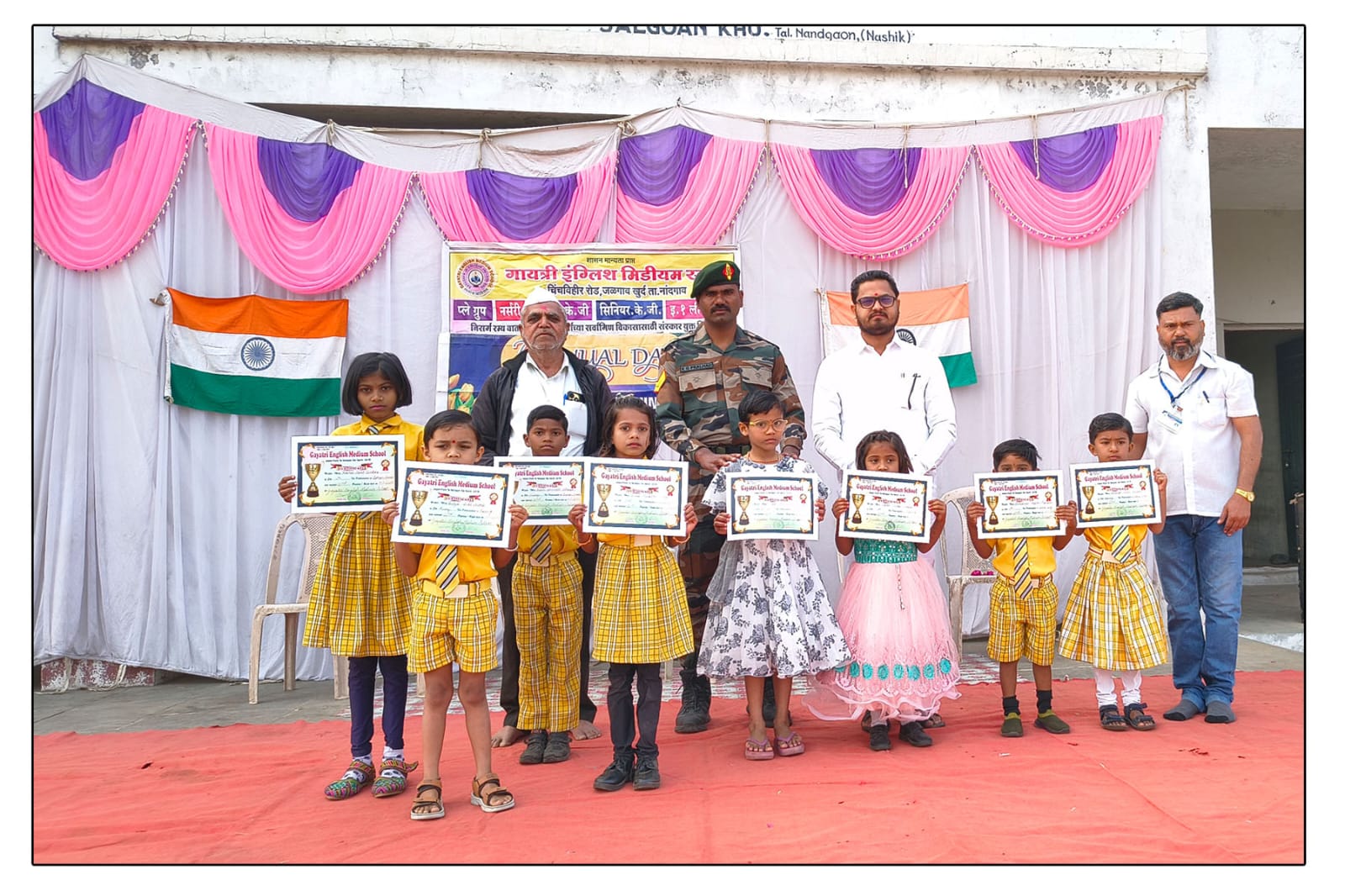 या याप्रसंगी चिमुकल्या मुलांनी संगीत कवायतीचे संचलन करण्यात आले तसेच साक्षरतेची शपथ घेण्यात आली. मान्यवरांच्या उपस्थित वार्षिक क्रिडा स्पर्धेमधील उत्तीर्ण विद्यार्थांना विविध बक्षिस व प्रमाणपत्र देवून गौरविण्यात आले विद्यार्थांनी विविध देश भक्तीपर गितांवर नृत्य सादर करून उपस्थितांची मने जिंकली