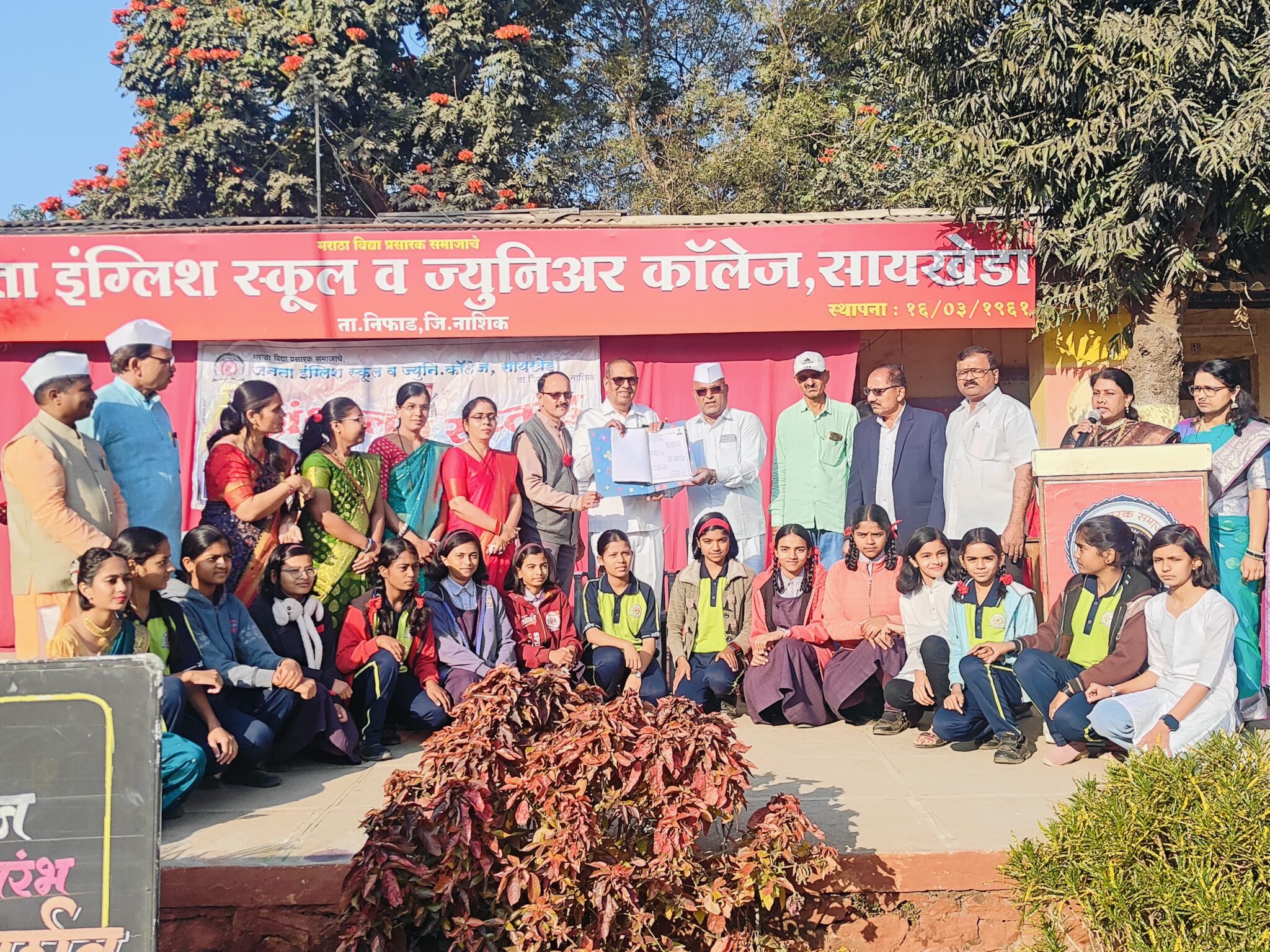 कविद्या प्रसारक समाज संस्था संचलित सायखेडा येथील जनता इंग्लिश स्कूल विद्यालय व ज्युनिअर कॉलेज मध्ये ‘ मराठी भाषा संवर्धन पंधरवडा’ विविध कार्यक्रमानी उत्साहात साजरा करण्यात आला. मराठा विद्या प्रसारक समाज संस्थेचे निफाड तालुका संचालक श्री शिवाजी आप्पा गडाख यांच्या मार्गदर्शनाखाली हा सप्ताह साजरा करण्यात आला.