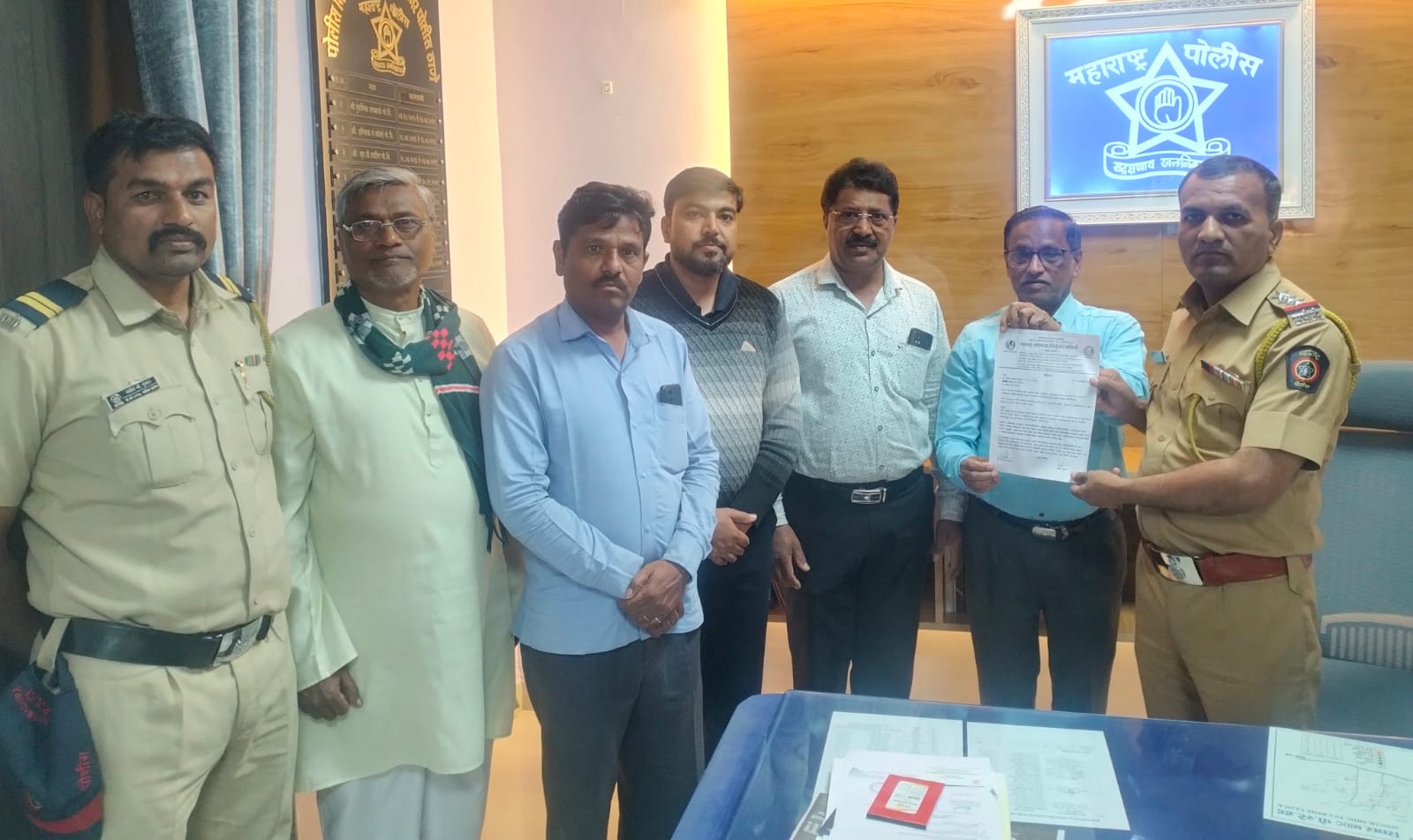 वडांगळी येथील सतीमाता सामतदादा यात्रेत अंनिसच्या कार्यकर्त्यांना पुरेसे संरक्षण मिळावे या आशयाचे निवेदन एमआयडीसी सिन्नर चे पोलिस निरीक्षक भरत जाधव यांना निवेदन देताना सिन्नरचे अंनिसचे पदाधिकारी