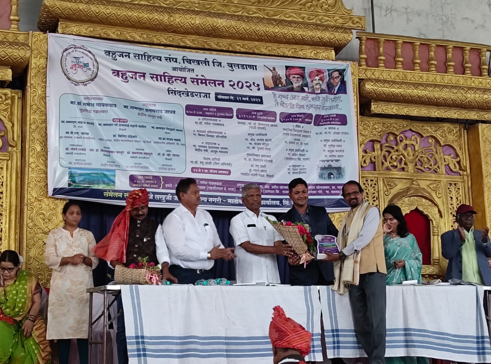 नाशिक ( प्रतिनिधी) : बहुजन साहित्य संघ,चिखली जि.बुलढाणा आयोजित राज्यस्तरीय ६वे बहुजन साहित्य संमेलन ३१मार्च २०२५रोजी सिंदखेड राजा या ऐतिहासिक, सामाजिक व राजकीय वारसा असलेल्या नगरीत संपन्न झाले. याप्रसंगी नाशिकचे जेष्ठ कवी तसेच मविप्र समाज नाशिकचे सेवानिवृत्त प्रबंधक व निवृत्त सेवक संघाचे सचिव माणिकराव गोडसे यांना फुले शाहू आंबेडकर पुरस्काराने सन्मानित करण्यात आले.. कवी गोडसे यांना यापूर्वी पुणे विद्यापीठ गुणवंत सेवक, मविप्र समाज आदर्श सेवक, कादवा शिवार साहित्य मित्र, साहित्य रत्न, समाज भूषण, कवी कुसुमाग्रज, लोककवी वामनदादा कर्डक, कवी पी.सावळीराम असे विशेष राज्य व राष्ट्रीय पुरस्कार मिळाले आहेत.