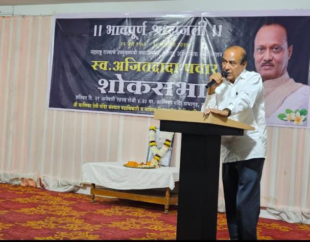 नाशिक( प्रतिनिधी ):- कालिका देवी मंदिर संस्थान आणि नाशिकच्या विविध क्रीडा संघटना यांच्यातर्फे कल दिनांक ३१ जानेवारी रोजी कालिका मंदिर संस्थांनच्या हॉलमध्ये महाराष्ट्राचे उपमुख्यमंत्री तथा महाराष्ट्र्र ऑलीम्पिक असोसिएशनचे अध्यक्ष अजितदादा पवार यांना भावपूर्ण श्रद्धांजली अर्पण करण्यात आली.
