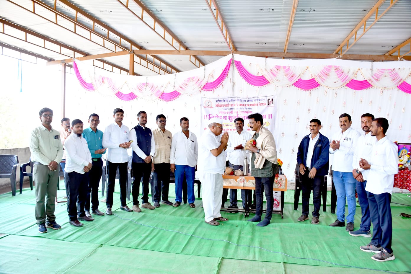 . प्रा. दीपक जमधाडे यांनी शिक्षकीय मनोगतातून विद्यार्थ्यांना परीक्षा व उज्ज्वल भविष्यासाठी शुभेच्छा दिल्यात, प्रास्ताविक पर्यवेक्षक व्ही. डी. काळे यांनी केले, प्रा. पी. यु. शिंदे यांनी पाहुण्यांचा परिचय करून दिला, सूत्रसंचलन प्रा. दीपक बोरसे यांनी केले, तर आभार प्रा. प्रशांत देवरे यांनी मानलेत. समारोपप्रसंगी उपस्थितांनी अल्पोपाहाराचा आस्वाद घेतला.