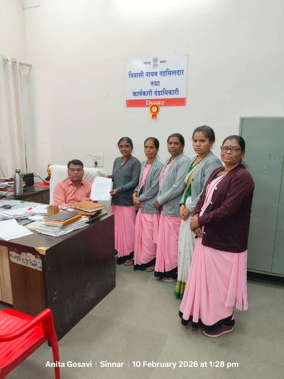 सिन्नरचे नायब तहसीलदार श्री . मुंदडा यांना निवेदन देताना अंगणवाडी कर्मचारी संघाचे पदाधिकारी