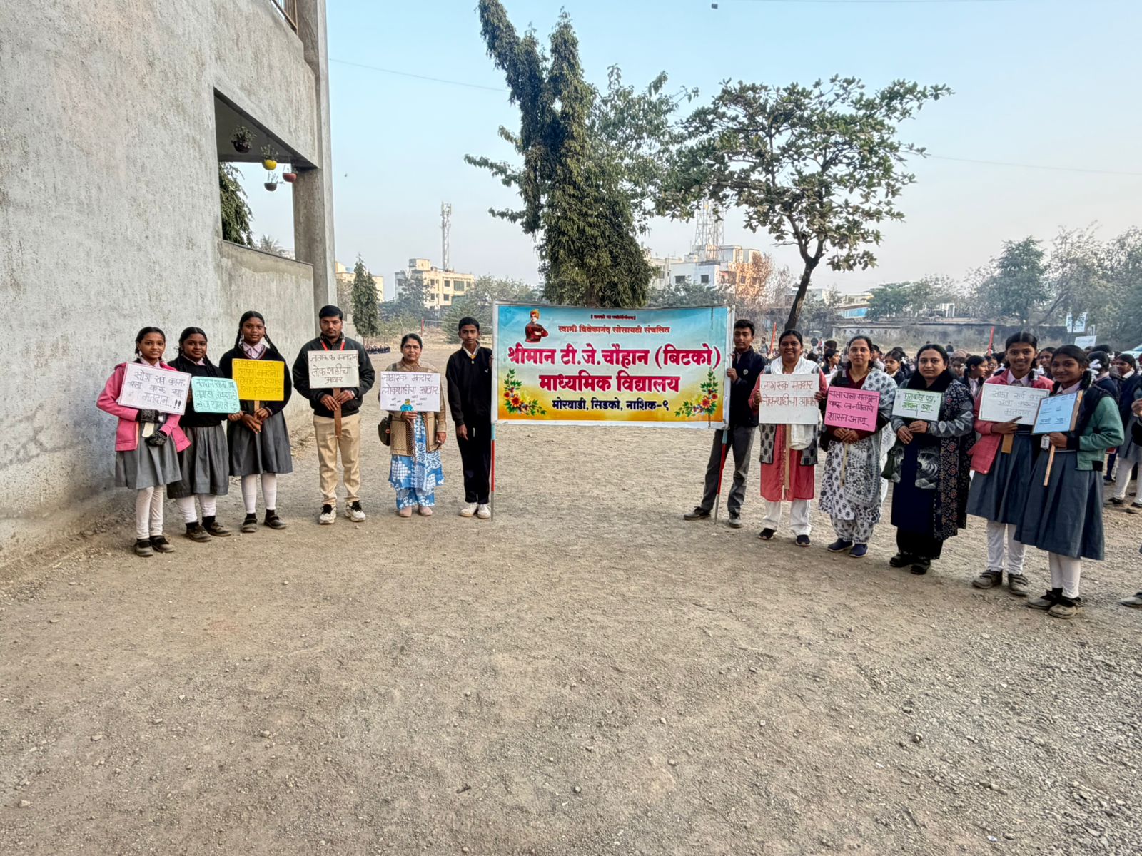 नाशिक ( प्रतिनिधी )स्वामी विवेकानंद सोसायटी संचलित श्रीमान टी.जे.चौहान (बिटको) माध्यमिक विद्यालय मोरवाडी येथे येणाऱ्या निवडणुकांच्या पार्श्वभूमीवर नागरिकांमध्ये मतदानाविषयी जागरूकता निर्माण करण्याच्या उद्देशाने शाळेमार्फत मतदान जनजागृती रॅलीचे आयोजन करण्यात आले. सदर रॅलीमध्ये इयत्ता सातवी अ ब क ड विद्यार्थ्यांनी सहभाग घेतला. लोकशाही मूल्ये व मतदानाचे महत्त्व याबाबत समाजात सकारात्मक संदेश देणे हा या उपक्रमाचा उद्देश होता. यावेळी विद्यालयाच्या मुख्याध्यापिका सौ. उज्वला माळी मॅडम श्रीयुत झोटिंग सर उपस्थित होते. कार्यक्रम यशस्वीतेसाठी सर्व शिक्षक, शिक्षकेतर कर्मचारी यांनी परिश्रम घेतले.