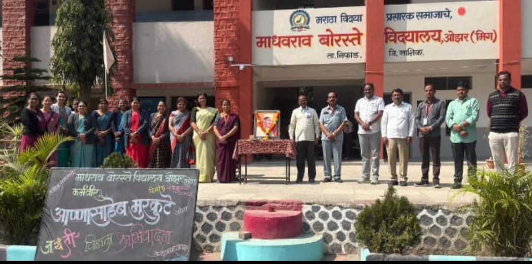 ओझर:( वार्ताहर)येथील माधवराव बोरस्ते विद्यालयात मराठा विद्या प्रसारक समाज संस्थेचे आद्य संस्थापक कर्मवीर अण्णासाहेब मुरकुटे यांच्या जयंतीनिमित्त प्रतिमेचे पूजन मुख्याध्यापक सोपान वाटपाडे उपमुख्याध्यापक सतीश केदार पर्यवेक्षक दशरथ शिंदे यांच्या हस्ते होऊन त्यांच्या स्मृतीस अभिवादन केले.
