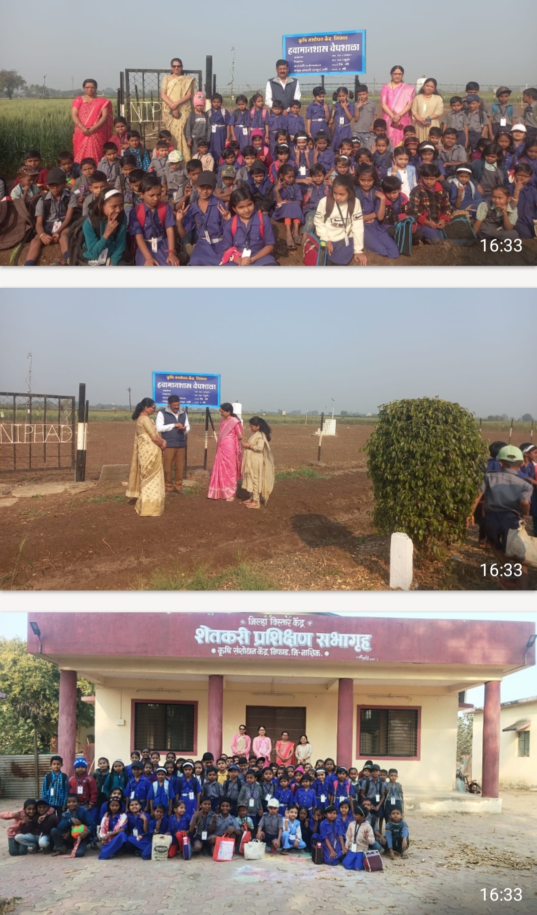 जिल्हा परिषद प्राथमिक शाळा कुंदेवाडी (गीताकुंज) येथील विद्यार्थ्यांनी कृषी संशोधन केंद्र कुंदेवाडी निफाड येथे भेट दिली क्षेत्र भेट शिवार फेरी दरम्यान डॉ.भरत मालुंजकर यांनी विद्यार्थ्यांना संशोधन केंद्रावर पिकावर कसे संशोधन करतात,गहू पीक कसे घेतले जाते,गव्हाचे विविध वाण,गव्हापासून बनणारे विविध पदार्थ कोणत्या गव्हापासून तयार होतात.यातील विविध वाणांच्या तुलनेत अधिक उत्पादन देणाऱ्या वाणांची लागवड केली जाते,तसेच येथील हवामान वेधशाळा याबद्दल सविस्तर माहिती दिली.