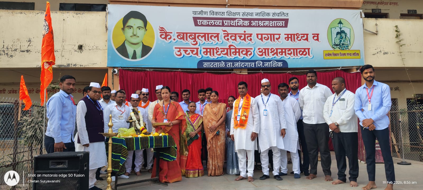 नांदगाव- ( प्रतिनिधी ) ग्रामीण विकास शिक्षण संस्था नाशिक संचलित अनुदानित प्राथमिक, माध्यमिक व उच्च माध्यमिक आश्रमशाळा सारताळे येथे जाणता राजा शिव छत्रपती यांची प्रतिमा पुजन व महाआरती करून शिवजयंती मोठ्या उत्सहात साजरी करण्यात आली सदर प्रसंगी संस्था कोषाध्यक्षा तथा प्राथमिक आश्रमशाळा मुख्याध्यापिका मा. नम्रता पगार मॅडम यांनी शिवजयंती साजरी करून आपलं कर्तव्य संपत नाही तर शिवछत्रपतींच्या विचाराचा आणि संस्काराचा वारसा जपला पाहिजे असे नमुद केले.