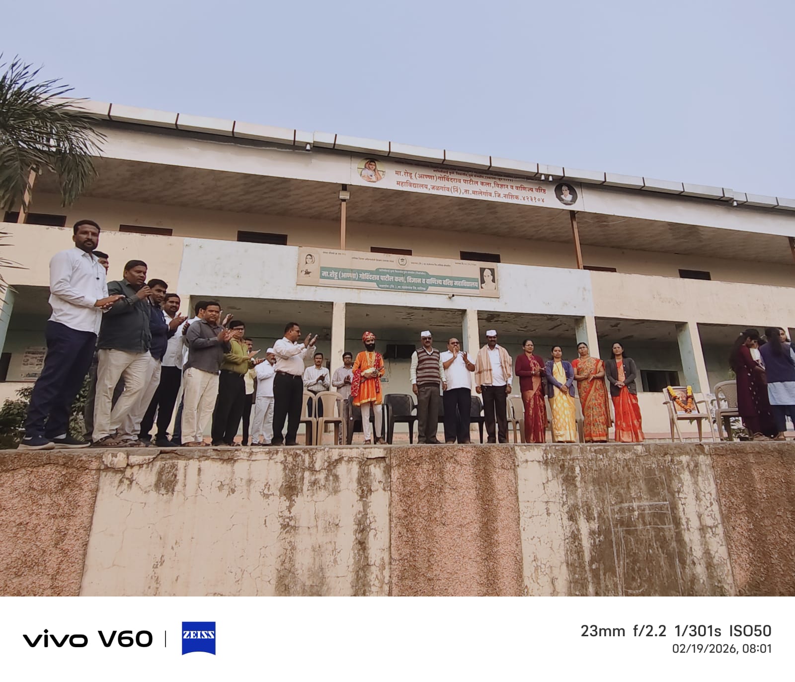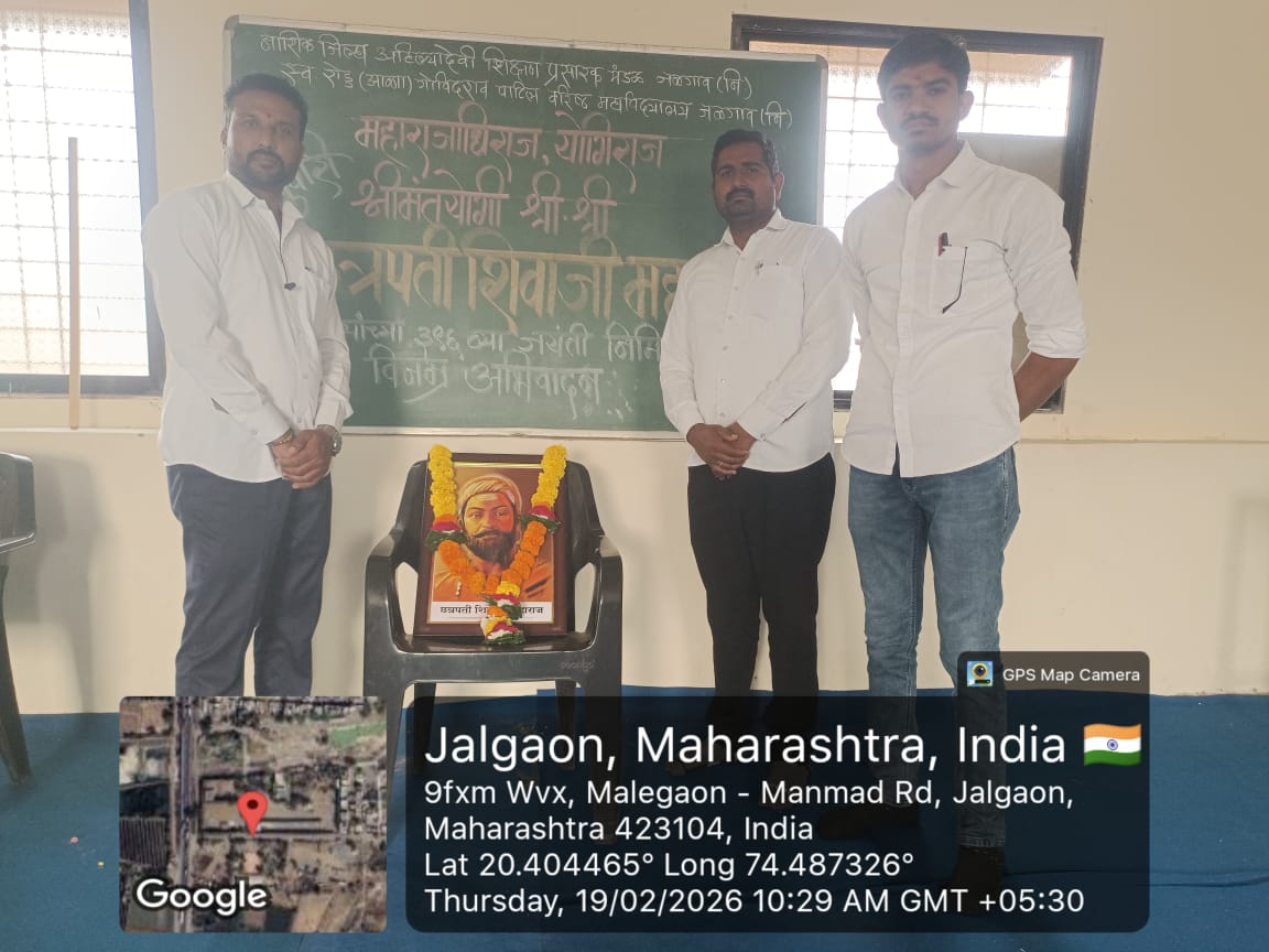 कार्यक्रमाच्या अध्यक्षस्थानी संस्थेचे सचिव मा.महेंद्र रोडू अण्णा पाटील हे होते. या समवेत संस्थेच्या अध्यक्षा कासुताई रोडू अण्णा पाटील,समन्वयक निंबाजी शिंदे, प्राचार्य श्री.सद्दाम अली अन्सारी पर्यवेक्षक व्ही. डी काळे सर, सर्व प्राध्यापक, शिक्षकेतर कर्मचारींसह बहुसंख्येने विद्यार्थी उपस्थित होते.कार्यक्रमावेळी विद्यार्थींनीच्या हस्ते स्वराज्य संस्थापक छत्रपती शिवाजी महाराज यांच्या प्रतिमेचे पूजन करण्यात आले. ‘.यावेळी प्रा. सुदय बोरसे, योगेश ठोके,अमोल अहिरे सर प्रा. शारिक सर,एन.एस.एस.प्रमुख निसार सर, वानखेडे सर ,आर के काका उपस्थित होते.