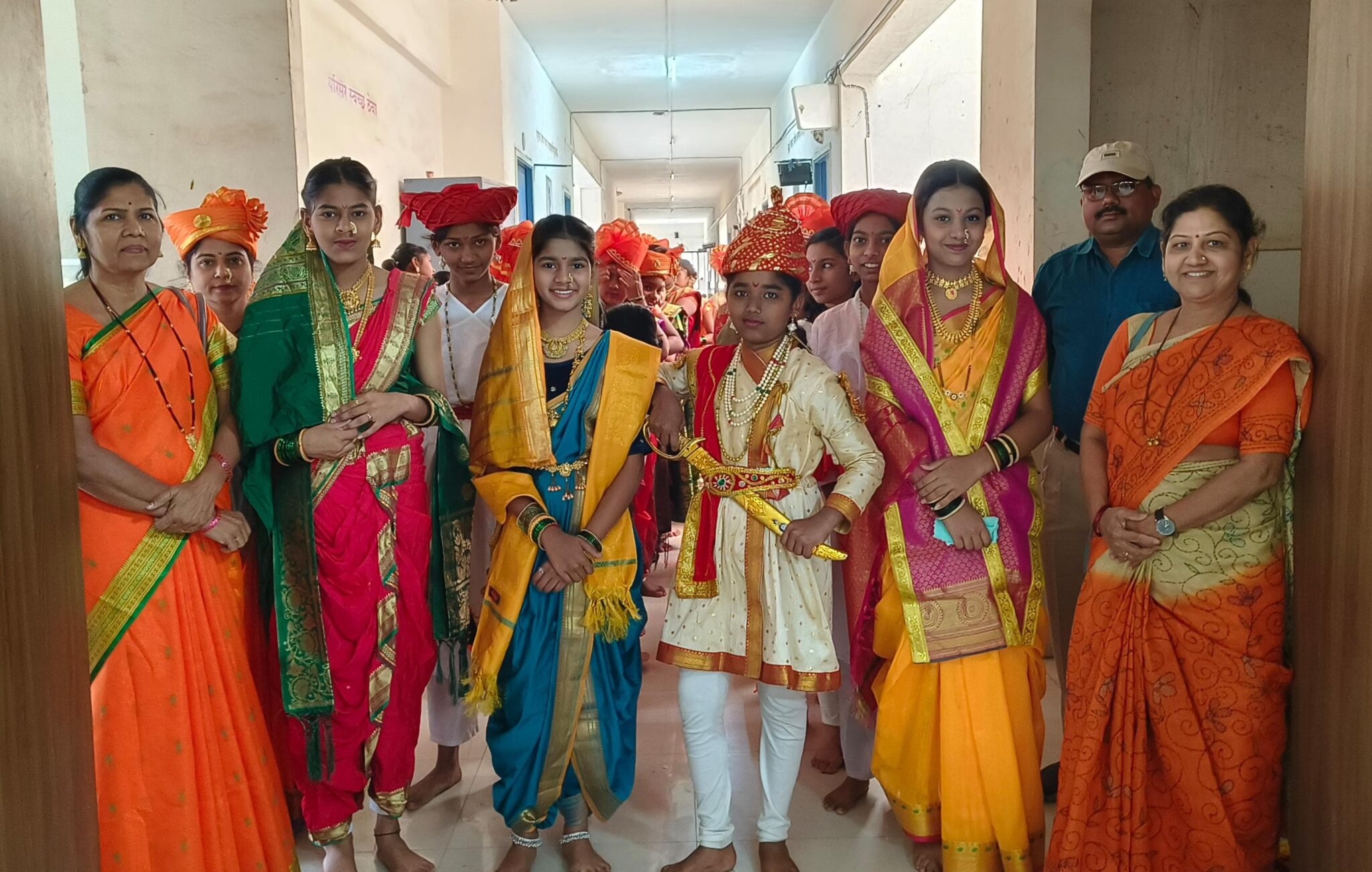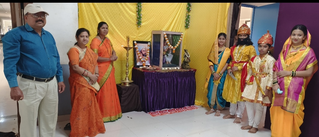 या विशेष प्रसंगी विद्यार्थिनींनी छत्रपती शिवाजी महाराज, राजमाता जिजाऊ, सईबाई, सोयराबाई तसेच संभाजी महाराज यांच्या वेशभूषा साकारून इतिहास जणू सजीव केला. त्यांच्या आत्मविश्वासपूर्ण सादरीकरणातून शिवकालीन तेजाची अनुभूती सर्वांना लाभली.