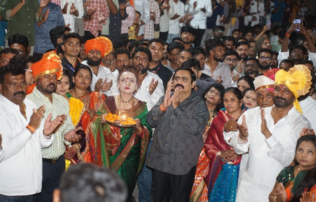 मंत्रोच्चार आणि ढोल ताशांच्या गजरात परिसर शिवभक्तिमय झाला होता. कार्यक्रमाच्या सुरुवातीला सार्वजनिक शिवजयंती उत्सव समिती अध्यक्ष नूतन कासलीवाल हे सपत्नीक तसेच आमदार सुहास कांदे सपत्नीक पूजेस बसले. मतदार संघातील 25 आमंत्रित पुरोहितांच्या वेदमंत्रांनी वातावरण दुमदुमले होते. विधिवत पूजनानंतर क्रेनच्या सहाय्याने शिवछत्रपती महाराजांच्या पुतळ्यावर दुग्धाभिषेक करण्यात आला.