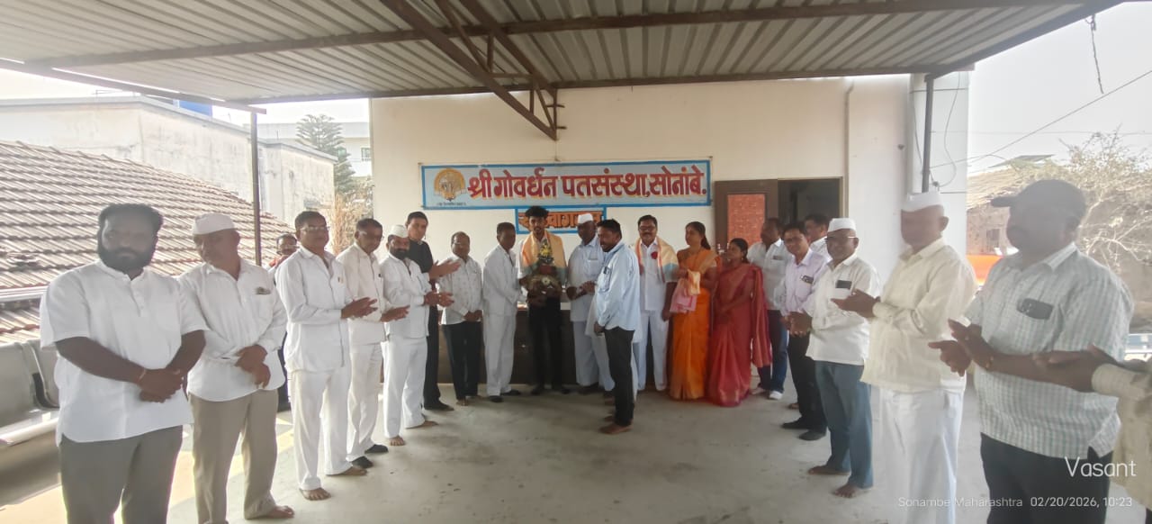 सोनांबे (प्रतिनिधी ) : येथील गुणवंत विद्यार्थी चि. हर्ष रमेश पवार याने भारतीय कौशल्य स्पर्धा अंतर्गत थ्री डी ॲनिमेशन गेमिंग प्रकारात पश्चिम भारतातून सुवर्णपदक पटकावत गावाचे नाव उंचावले आहे. त्याच्या या अभूतपूर्व यशाबद्दल गावातील गोवर्धन पतसंस्था, सोनांबे सोसायटीच्या वतीने भव्य सत्कार समारंभ आयोजित करण्यात आला होता. सत्कार समारंभाच्या अध्यक्षस्थानी गोवर्धन पतसंस्थेचे अध्यक्ष शरद रत्नाकर होते. यावेळी सरपंच सौ. प्रमिला पवार, उद्योजक तानाजी पवार, पतसंस्थेचे व्हा. चेअरमन भाऊसाहेब पवार, निवृत्त पोलीस अधिकारी पांडुरंग पवार, दिपक वारुंगसे, अनिल पवार, संतोष डावरे, विकास सेवा सोसायटीचे चेअरमन पंडित घोडे, सुरेश पवार, ज्ञानेश्वर बोडके, रामभारती गोसावी, रमेश पवार, पतसंस्थेचे व्यवस्थापक संदीप घोडे, रामदास बोडके आदी मान्यवर उपस्थित होते.