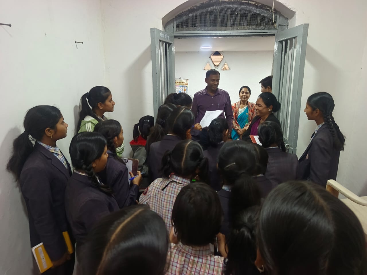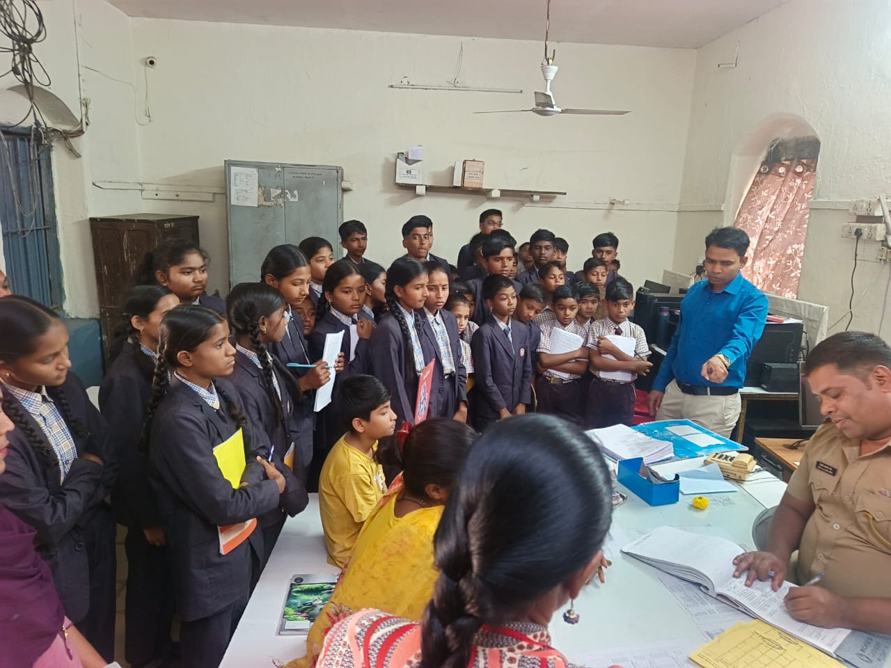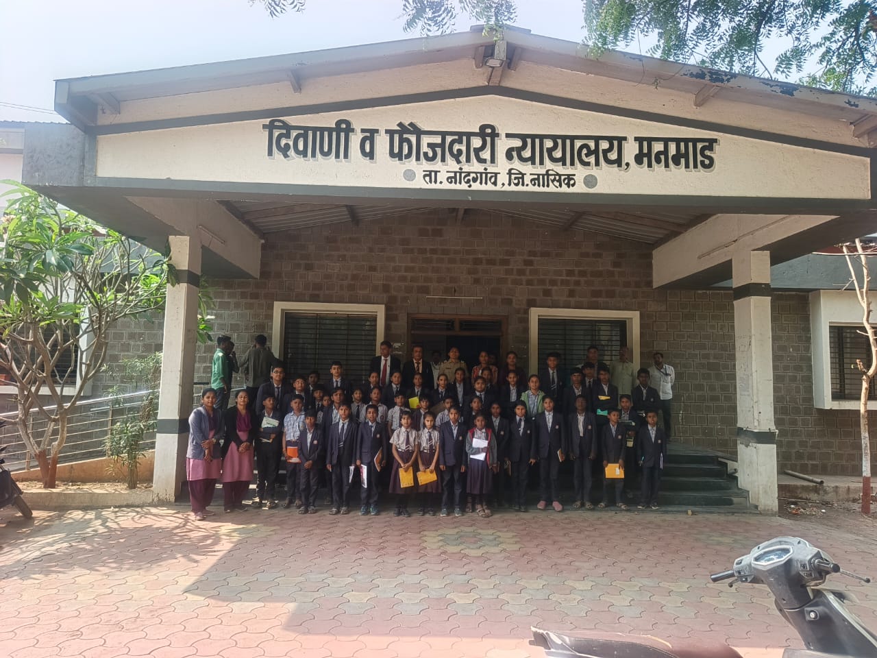 . तातडीची मदतीसाठी किंवा तक्रार नोंदणी करण्यासाठी पोलीस स्टेशनशी साधता येतो. संपर्क ११२/१००/१०८/ इ. नंबर कशाप्रकारे उपयोग करता येईल ते स्पष्ट केले. गुन्हा शाखा, सायबर गुन्हा शाखा, अंमली पदार्थ विरोधी कक्ष, महिला अत्याचार विरोधी कक्ष, समुपदेशन कक्ष,अनैतिक मानवी वाहतूक प्रतिबंध कक्ष, गुन्हे प्रकटीकरण कक्ष, शस्ञास्ञसाठा कक्ष, गुन्हेगार कोठडी इ.तेथील कार्यरत ठिकाण बघितले.त्यानंतर जवळील न्यायालय येथे जाऊन तेथील प्रत्यक्षात न्यायालयीन कामकाज,विविध वकील, खटल्यांची सुनावणी, न्यायालयीन कक्ष,दिवाणी-फौजदारी कक्ष, बघितले व वर्गात कधीही शांत न बसणारे विद्यार्थ्यांना तेथील अप्रुप वाटले ते म्हणजे तेथील शांतता, अनेक लोक कामे करून ये- जा करत होती मात्र सर्व कारभार शांत व सुरळीत चालू होता.तेथील अँड. मोरे साहेबांनी विद्यार्थ्यांना छानच माहिती व मार्गदर्शन केले.