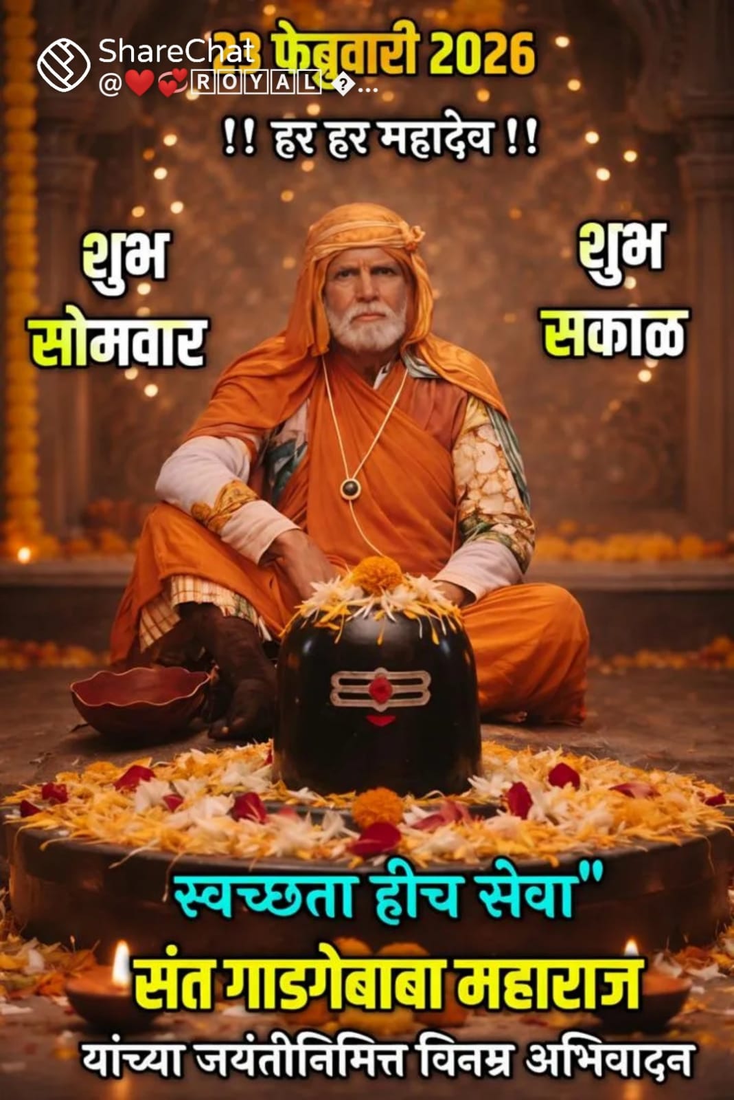 स्वच्छता आणि समाजसेवेचा महामंत्र देणाऱ्या थोर समाजसुधारक, कर्मयोगी संत गाडगे बाबा यांना जयंतीनिमित्त विनम्र अभिवादन !
