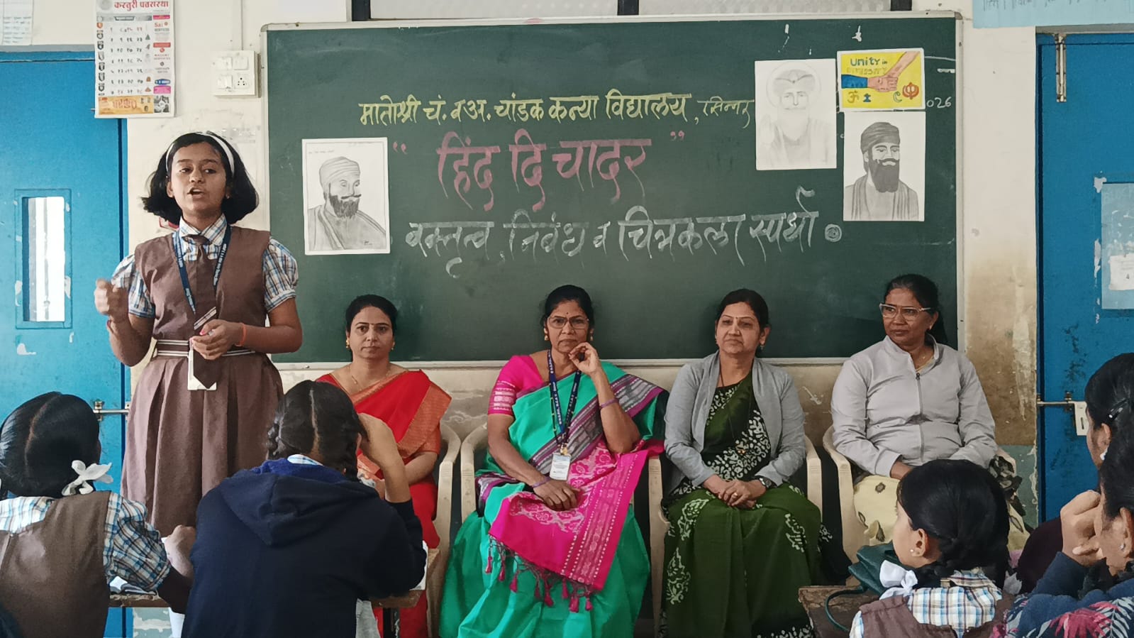 सिन्नर ( प्रतिनिधी) मातोश्री चंद्रभागाबाई व अयोध्याबाई चांडक कन्या विद्यालय, सिन्नर येथे ‘हिंद दी चादर’ या प्रेरणादायी उपक्रमाचे उत्साहपूर्ण आयोजन करण्यात आले. या उपक्रमांतर्गत निबंध, वक्तृत्व व चित्रकला स्पर्धा घेण्यात आल्या. विद्यार्थिनींनी उत्स्फूर्त सहभाग नोंदवत आपल्या प्रतिभेची प्रभावी छाप पाडली.