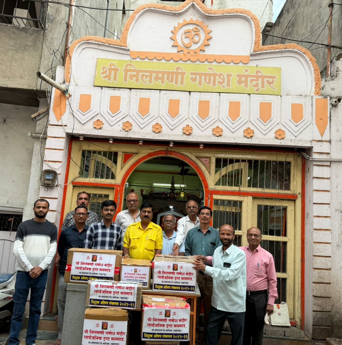 मनमाड -( प्रतिनिधी )मनमाड शहरात धार्मिक, सांस्कृतिक, पर्यावरण ,सामाजिक व शैक्षणिक आरोग्य सेवा क्षेत्रात सन 1997 पासून आम्ही परंपरा पाळतो ….! आम्ही संस्कृती चे रक्षण करतो…! हे ब्रीद वाक्य घेऊन आजपर्यंत अखंडीतपणे 30 वर्षे विविध उपक्रमांद्वारे धार्मिक व सामाजिक आरोग्य सेवाकार्य करणार्या मनमाड शहरात मानाचे स्थान असणार्या श्री निलमणी गणेश मंदीर सार्वजनिक ट्रस्टतर्फे 2017 पासून यंदाही सलग नववे वर्षी भाद्रपद महा गणेशोत्सव 2025 मध्ये यंदा उत्सवाच्या 29 व्या वर्षानिमित्त गरीब रुग्णांसाठी शिल्लक औषध संकलन केंद्र सुरु करण्यात आले होते. शहरातील नागरिकांना त्यांच्याकडे उपचारानंतर शिल्लक असणारी औषधे की ज्यांची मुदत वैधता (एक्सपायरी डेट) बाकी आहे. ती श्री निलमणी गणेश मंदीरात ठेवण्यात आलेल्या शिल्लक औषध संकलन पेटीमध्ये देण्याचे आवाहन ट्रस्टतर्फे करण्यात आले होते. मनमाड शहरातील व परिसरातील गणेश भक्तांनी व नागरिकांनी या आरोग्य सेवा उपक्रमास उस्फुर्त प्रतिसाद दिला