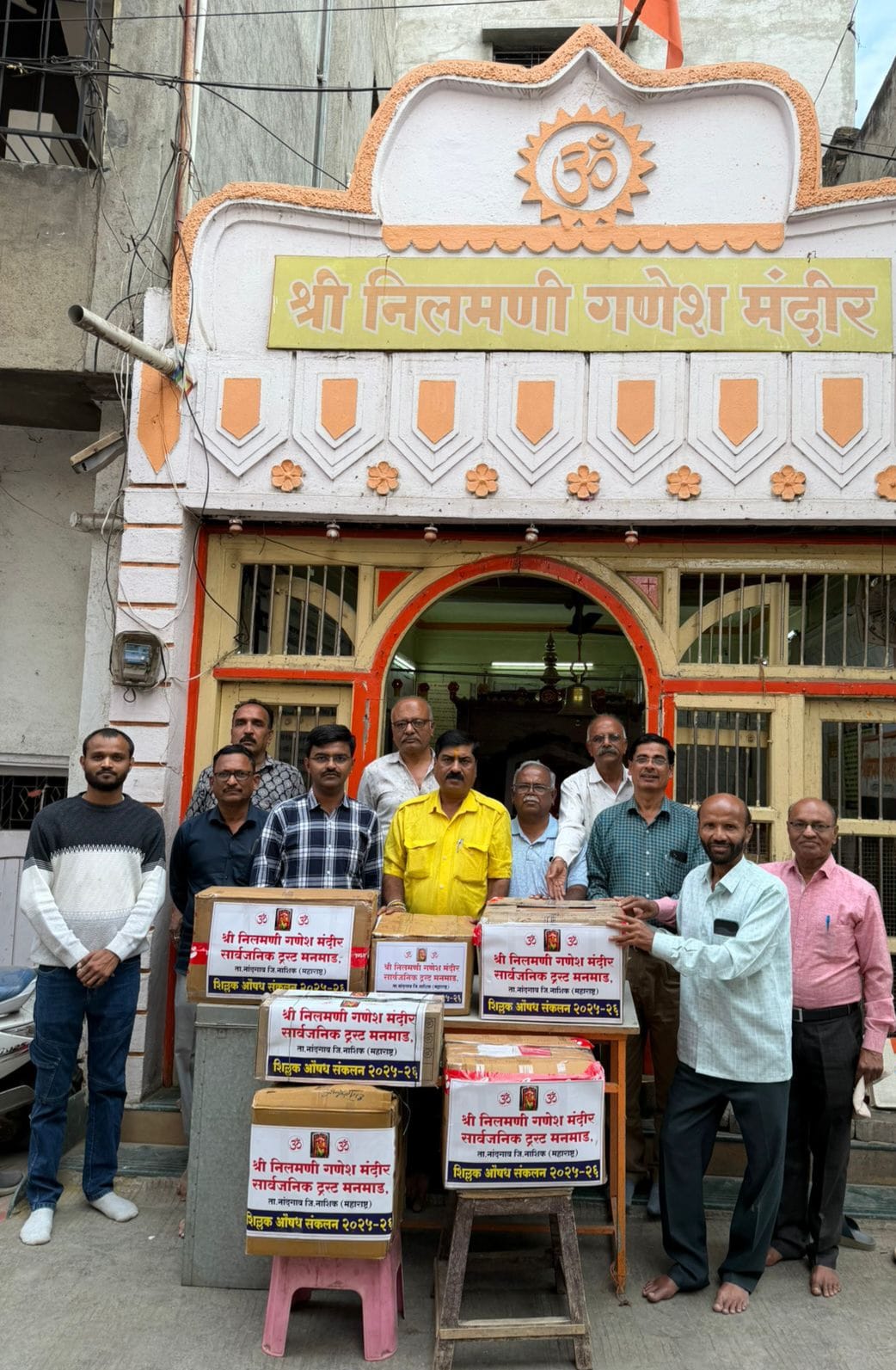 श्री निलमणी गणेश मंदिर सार्वजनिक ट्रस्ट ने या आरोग्य सेवा कार्यात मोठी भरारी घेत यंदा या शिल्लक औषध संकलन पेटीमध्ये सुमारे रुपये 109,000/- पेक्षा जास्त किंमतीची विक्रमी औषधे की ज्यांची मुदत वैधता शिल्लक आहे अशी संकलीत झाली. 2017 पासून आज पर्यंत नऊ वर्षात या उपक्रमा द्वारे ट्रस्ट तर्फे 3,25,000/- पेक्षा जास्त किमतीची औषधे संकलित करण्यात आली आहेत ट्रस्टतर्फे या औषधांचे विविध आजारानुसार वर्गीकरण करण्यात आले आणि राष्ट्रीय स्वयंसेवक संघ संचलित सेवा भारती (जनकल्याण समिती) नाशिक यांच्या मार्फत दुर्गम आदिवासी भागात गरीब रुग्णांसाठी मोफत उपचार व औषधे उपलब्ध करुन दिली जातात म्हणून श्री निलमणी गणेश मंदीर ट्रस्टतर्फे यंदा ही सर्व रु.109,000/- पेक्षा किंमतीची विक्रमी संकलीत औषधे राष्ट्रीय स्वयंसेवक संघ संचलित सेवा भारती (जनकल्याण समिती ) चे नाशिक विभागीय कार्यवाह अरविंद जोशी यांच्या कडे यांना ट्रस्टचे अध्यक्ष किशोर गुजराथी, सचिव नितीन पांडे, उपाध्यक्ष शेखर पांगुळ , विश्वस्त गोविंद रसाळ, प्रज्ञेश खांदाट, नारायण फुलवाणी भिकाजी कुलकर्णी यांनी सूपूर्द केली श्री निलमणी गणेश मंदीर सार्वजनिक ट्रस्टतर्फे हा गरीब रुग्णांना मोफत औषध उपलब्ध करुन देणारा शिल्लक औषध संकलन केंद्र उपक्रम अखंडित सुरु राहणार असून सोबतच श्री निलमणी ट्रस्ट तर्फे भविष्यात मोफत औषध बँक सुरु करण्याचा मानस आहे तसेच मनमाड शहरात गरीब रुग्णांन साठी विविध आरोग्य सेवा उपलब्ध करणार असल्याचे ट्रस्टचे सचिव नितीन पांडे यांनी या प्रसंगी सांगितले .सेवा भारती तर्फे राबविण्यात येणाऱ्या विविध सेवा प्रकल्प ची माहिती देत अरविंद जोशी यांनी ट्रस्ट चे आभार व्यक्त केले श्री निलमणी गणेश मंदीरातर्फे राबविण्यात आलेल्या या उपक्रमात ट्रस्टला अक्षय सानप,जितेंद्र पाटील, भीमराव बिडगर, आकाश वाघ,दीपक शिंदे, अभिषेक पितृभक्त,कल्पेश बेदमुथा राहुल लांबोळे, रवींद्र वास्कर,मच्छिन्द्र साळी, प्रकाश धामणस्कर आदी मान्यवरां सह ज्ञात अज्ञात गणेश भक्तांन चे अनमोल सहकार्य लाभले. हा गरीब रुग्णांसाठीचा शिल्लक औषध संकलन उपक्रम यापुढेही ट्रस्टतर्फे निरंतर वर्षभर राबविला जाणार असून नागरिकांनी व गणेशभक्तांनी या उपक्रमास असाच प्रतिसाद द्यावा असे नम्र आवाहन श्री निलमणी गणेश मंदीर सार्वजनिक ट्रस्टतर्फे विश्वस्त , किशोर गुजराथी ,नितीन पांडे शेखर पांगुळ, गोविंद रसाळ,प्रज्ञेश खांदाट, नारायण फुलवाणी भिकाजी कुलकर्णी आदी विश्वस्त मंडळाने केले आहे. या कार्यक्रमास आदी सेवा भारती चे नाशिक जिल्हा सहसचिव कृष्णाजी वडे, सेवा भारती चे नाशिक जिल्हा कोषाध्यक्ष बाळासाहेब धांडे भरत छाबडा मान्यवरांन सह गणेश भक्त मोठया संख्येने उपस्थित होते कार्यक्रम च