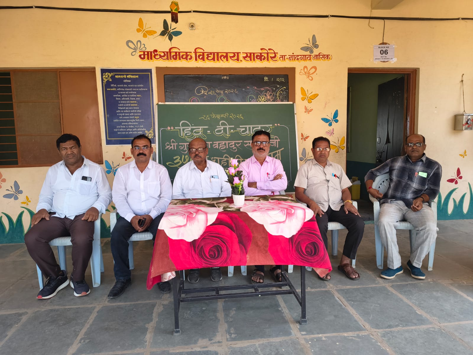 साकोरे ( प्रतिनिधी)पेङकाई माता सामाजिक शैक्षणिक संस्थेचे च्या माध्यमिक विद्यालय साकोरे येथे हिंद दी चादर कार्यक्रम प्रसंगी अध्यक्ष नांदगाव पंचायत समितीचे शिक्षण विस्तार अधिकारी सोमनाथ कांबरे हे होते तसेच जामदरी तांङा चे मनोहर हिरे सर हे देखील हजर होते त्यांनी गुरु तेग बहादूर यांच्या 350 व्या शहीदी समागम या प्रसंगी त्यागा बाबत सविस्तर इतिहास सांगितला माण्यवर यांचे मुख्याध्यापक योगेश पाटील यांनी शाल, पुष्प गुच्छ देऊन स्वागत केले यावेळी शिक्ष, शिक्षकेत्तर वृंद तसेच सिध्दीविनायक शास्ञ महाविद्यालय विद्यार्थी शिक्षक उपस्थित होते.
