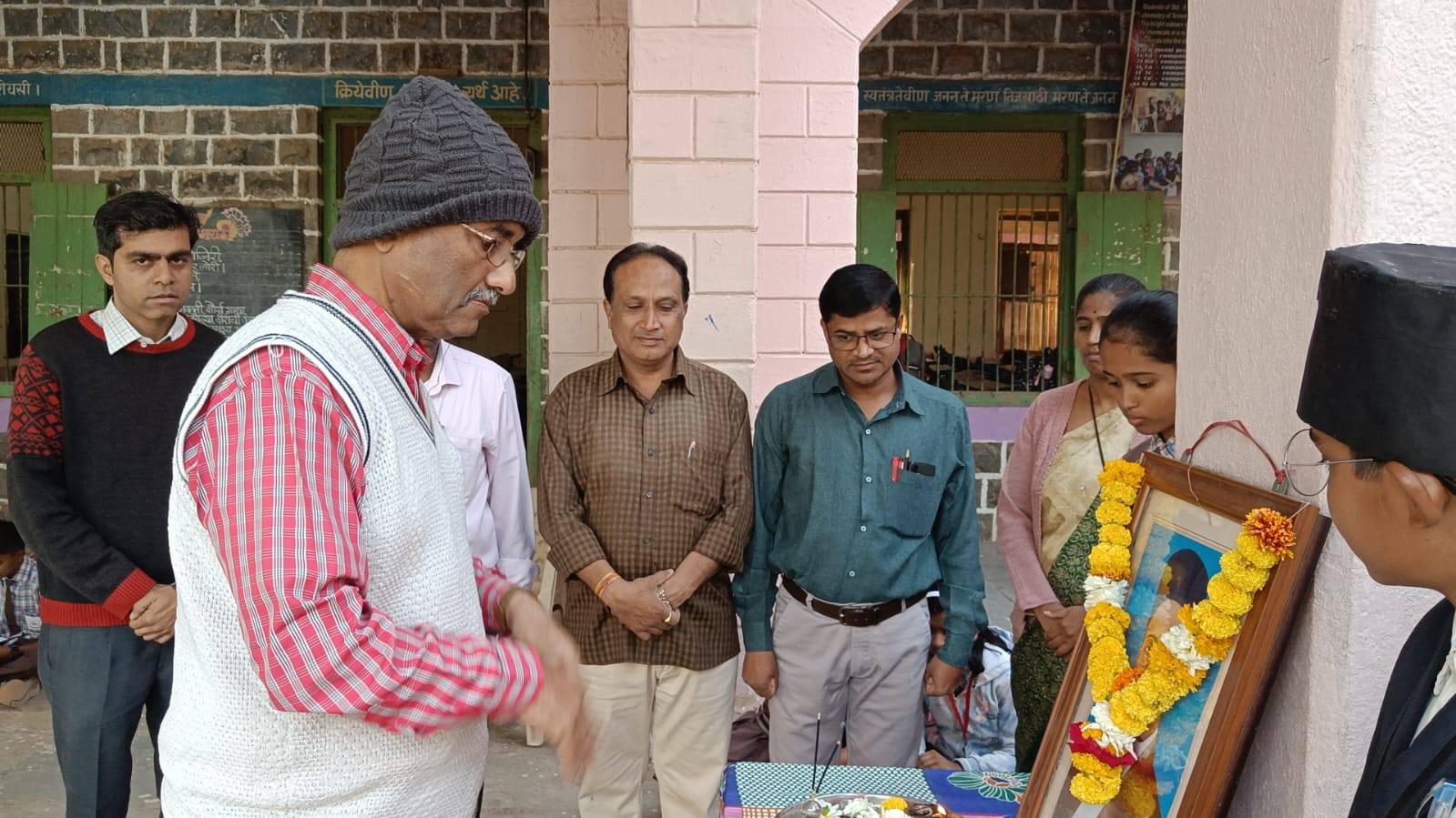 नांदगाव ( प्रतिनिधी ):विनायक दामोदर सावरकर यांच्या पुण्यतिथीनिमित्त आज व्ही. जे. हायस्कूलमध्ये अभिवादनपर कार्यक्रम आयोजित करण्यात आला. कार्यक्रमाची सुरुवात सावरकरांच्या प्रतिमेचे पूजन करून करण्यात आली.