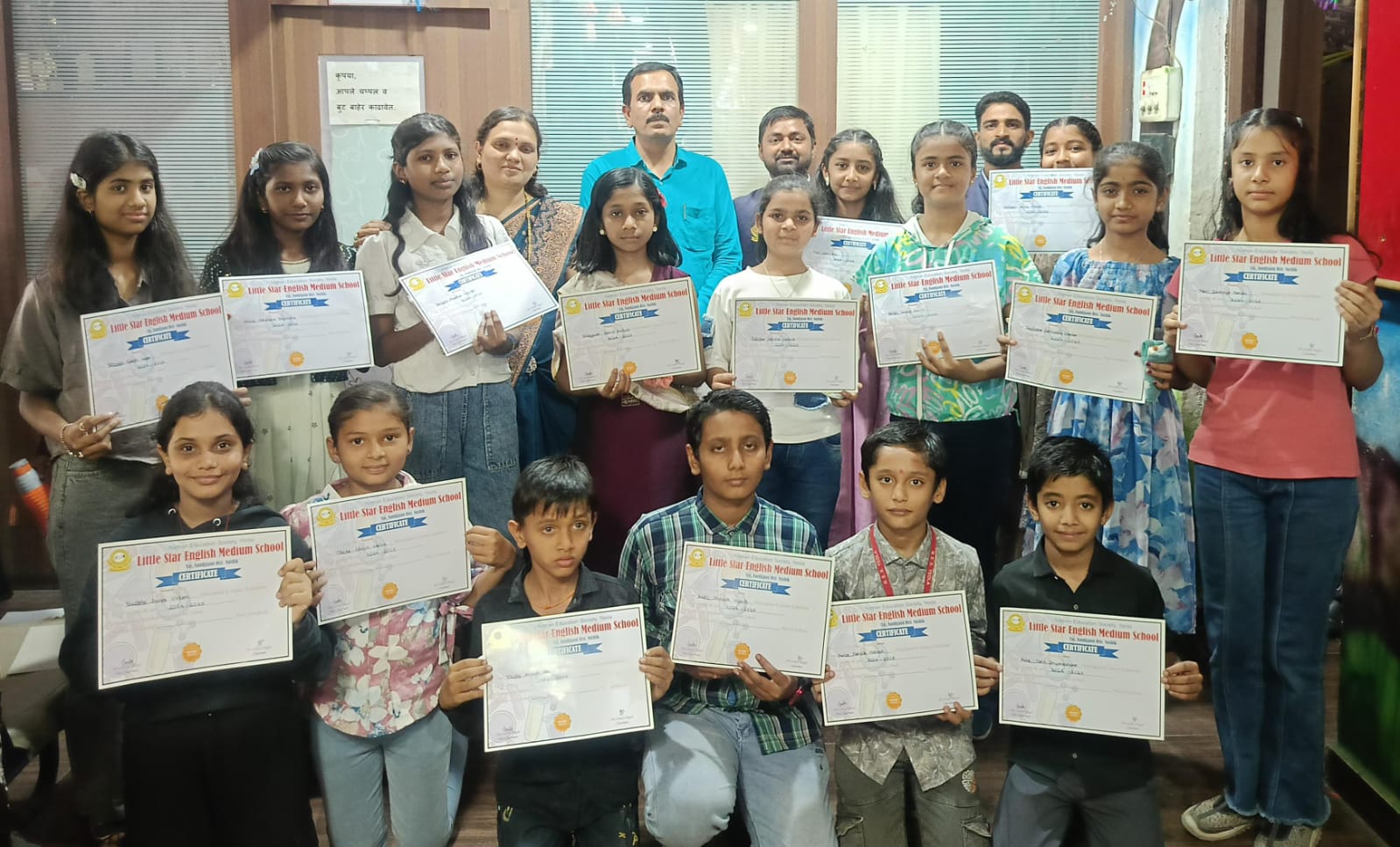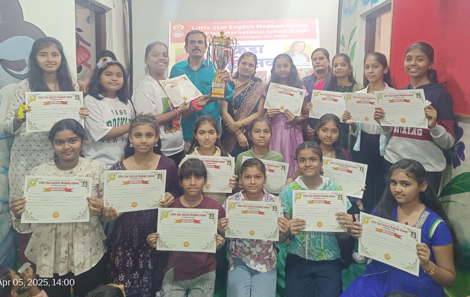 नांदगाव ( प्रतिनिधी).दिनांक 5 एप्रिल रोजी संस्थेचे अध्यक्ष श्री.संजय बागूल सर व उपाध्यक्ष सौ.सरिता बागूल मॅम यांच्या नेतृत्वाखाली या कार्यक्रमाचे आयोजन करण्यात आले होते. या वेळी संस्थेचे अध्यक्ष, उपाध्यक्ष आणि सर्व शिक्षक व शिक्षकेतर कर्मचारी उपस्थित होते.सर्व विद्यार्थी पार्टी वेअर लूक मध्ये गोड दिसत होती.विद्यार्थ्यांची स्पेशल लंच पार्टी नंतर ‘द जंगल बूक’ हा मुव्ही दाखविण्यासाठी स्पेशल तिकिट काऊंटर करण्यात आले होते. तिकिट घेऊन सर्वानी मुव्ही खूप एन्जॉय केला.विद्यार्थ्यांच्या बुद्धिमत्तेला वाव देण्यासाठी 2024-25 ह्या वर्षी मा.मॅनेजमेंटने स्कूलमध्ये खूप स्पर्धाचे परिपूर्ण आयोजन भरवले होते.वाचन स्पर्धा,लेखन स्पर्धा, विज्ञान प्रदर्शन स्पर्धा आणि क्रीडा स्पर्धा ईत्यादी. स्पर्धामध्ये स्कूलच्या सर्व विद्यार्थ्यांनी आपला सहभाग उत्तम नोंदविला.स्पर्धा मध्ये बक्षीसपात्र प्रत्येक विद्यार्थ्यांला आजच्या दिनी सन्मानचिन्ह मा.मॅनेजमेंटच्या हस्ते देऊन गौरविण्यात आले होते.